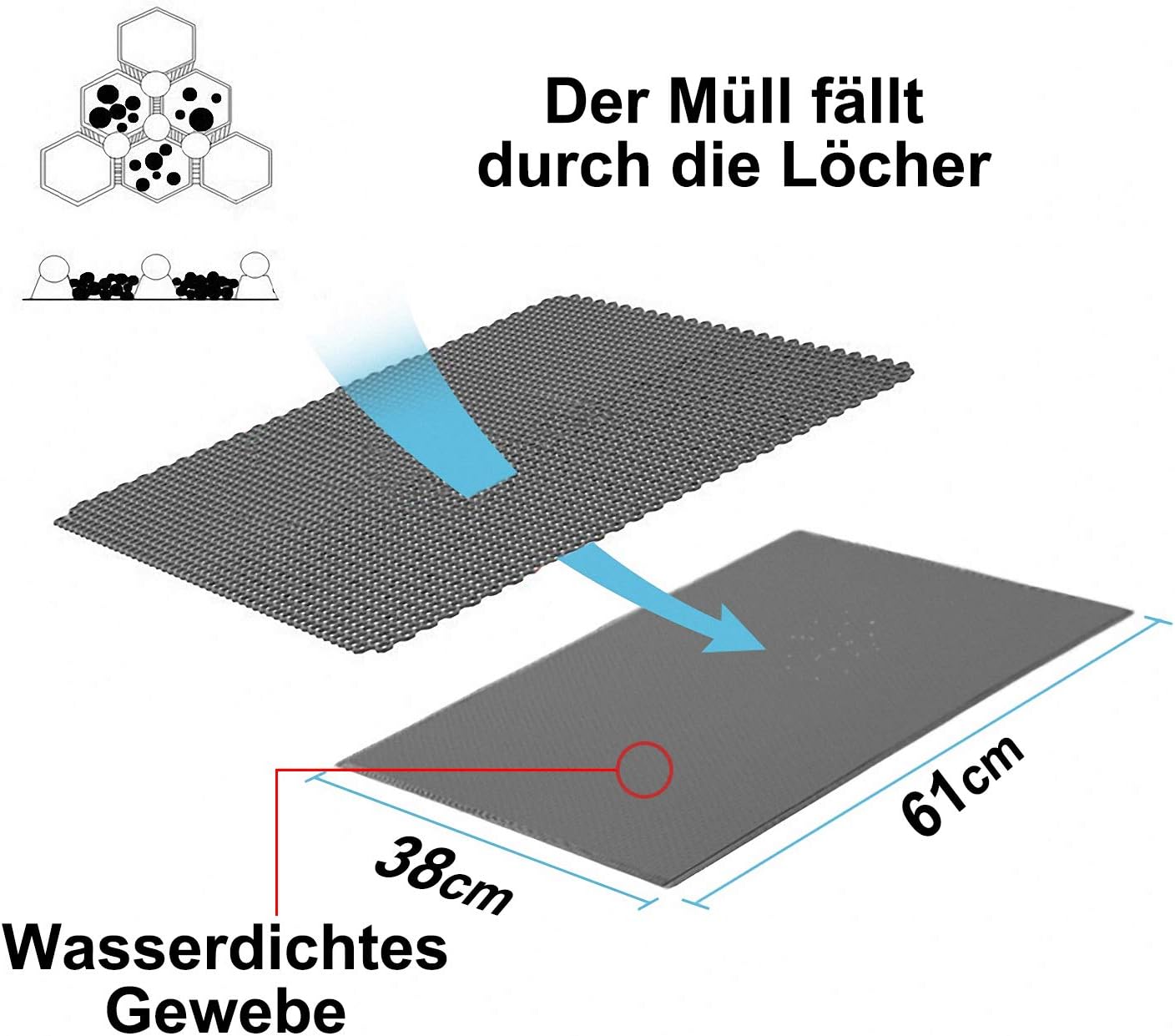 Despre acest articol: PERNUȚĂ DUBLĂ CU FAȚĂ TIP FAGURE: Designul cu fagure cu două straturi vă ajută să colectați deșeurile. Pur și simplu ridicați litiera și toate deșeurile vor cădea prin ea, pentru a le arunca apoi înapoi în litieră pentru reciclare. Nu mai există gunoi lipit de picioarele mele în fiecare zi! Găurile mari sunt suficient de mari pentru a prinde și colecta deșeurile. COVORAS REZISTENT LA URINĂ: Stratul inferior este antiderapant, astfel încât niciun lichid să nu poată pătrunde. Dacă o pisică vomită pe covorașul de așternut, o puteți clăti cu furtunul, este ușor de curățat și uscat. Protejați-vă podelele din lemn și covoarele de petele neplăcute de urină. COVOARE LAVABILE: Litiera Pieviev Matt este un covoraș îmbunătățit, fabricat din material EVA moale, durabil și lavabil. Murdăria poate fi îndepărtată cu ușurință. Cu un aspirator, puteți îndepărta complet deșeurile. Economisiți timp și bani. FĂRĂ FTALAȚI ȘI BPA: Așternut plăcut pentru lăbuțele sensibile. Multe alte covorașe sunt fabricate din materiale aspre care pot răni pisicuțele. Covorașul nostru premium confortabil este lipsit de ftalați, iar materialul nostru super moale EVA este delicat cu lăbuțele sensibile ale pisicilor; pisicilor chiar le place să doarmă pe el. PARAMETRII PRODUSULUI: Covoraș de litieră gri de 61 x 38 cm, potrivit pentru majoritatea litierelor. Covorașele noastre de litieră sunt fabricate din material EVA și au un ușor miros propriu. Acestea dispar după 2 zile de depozitare. Detalii suplimentare despre produs.