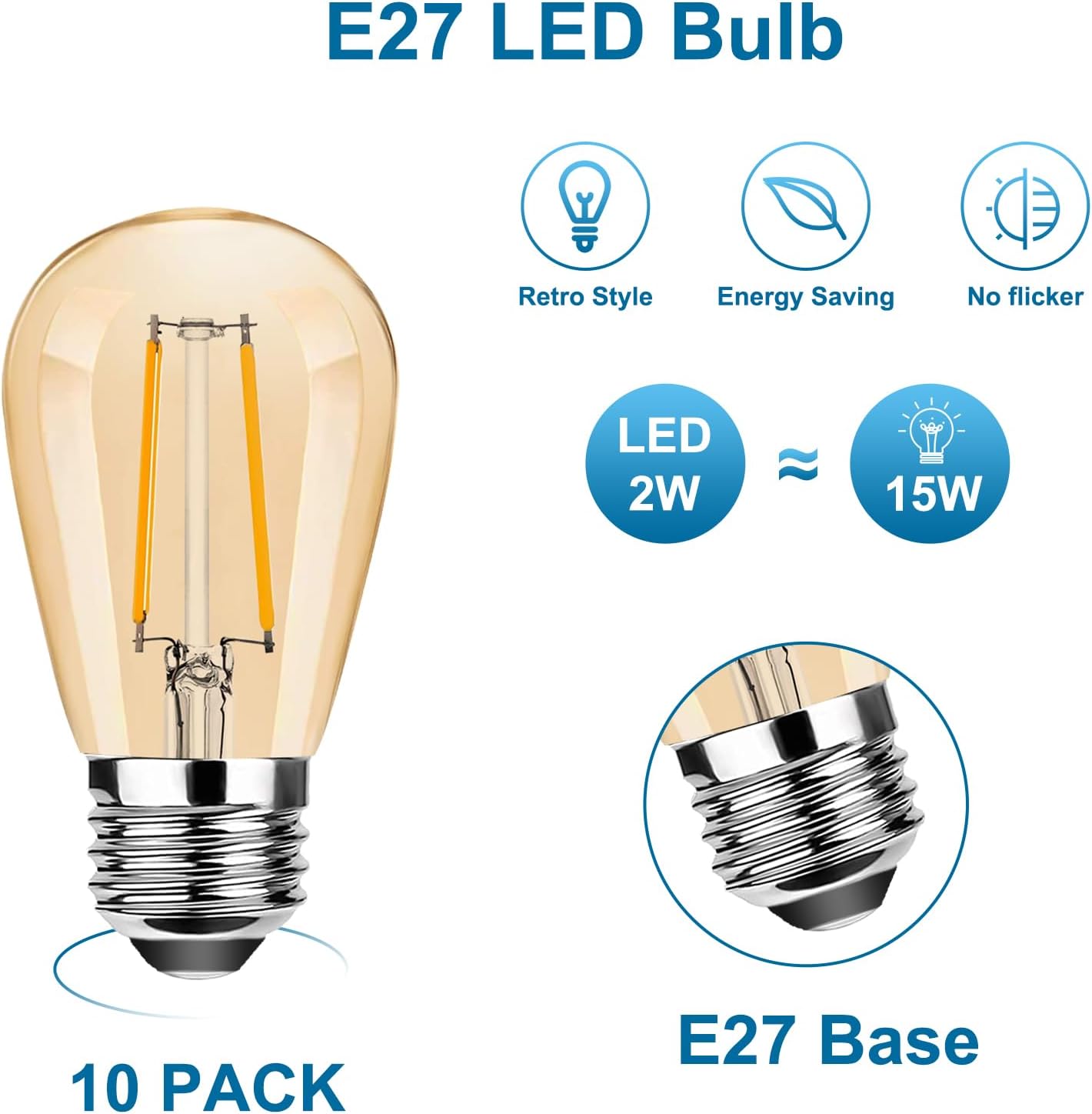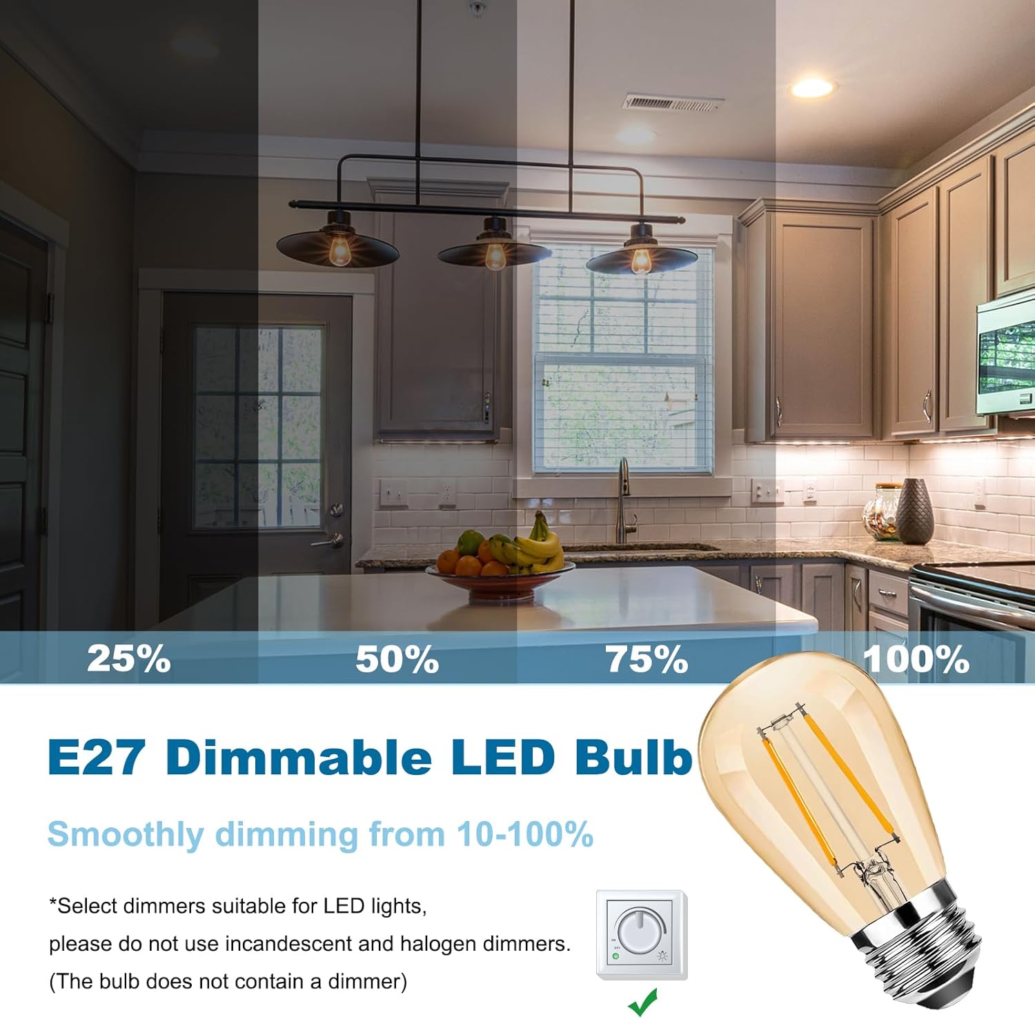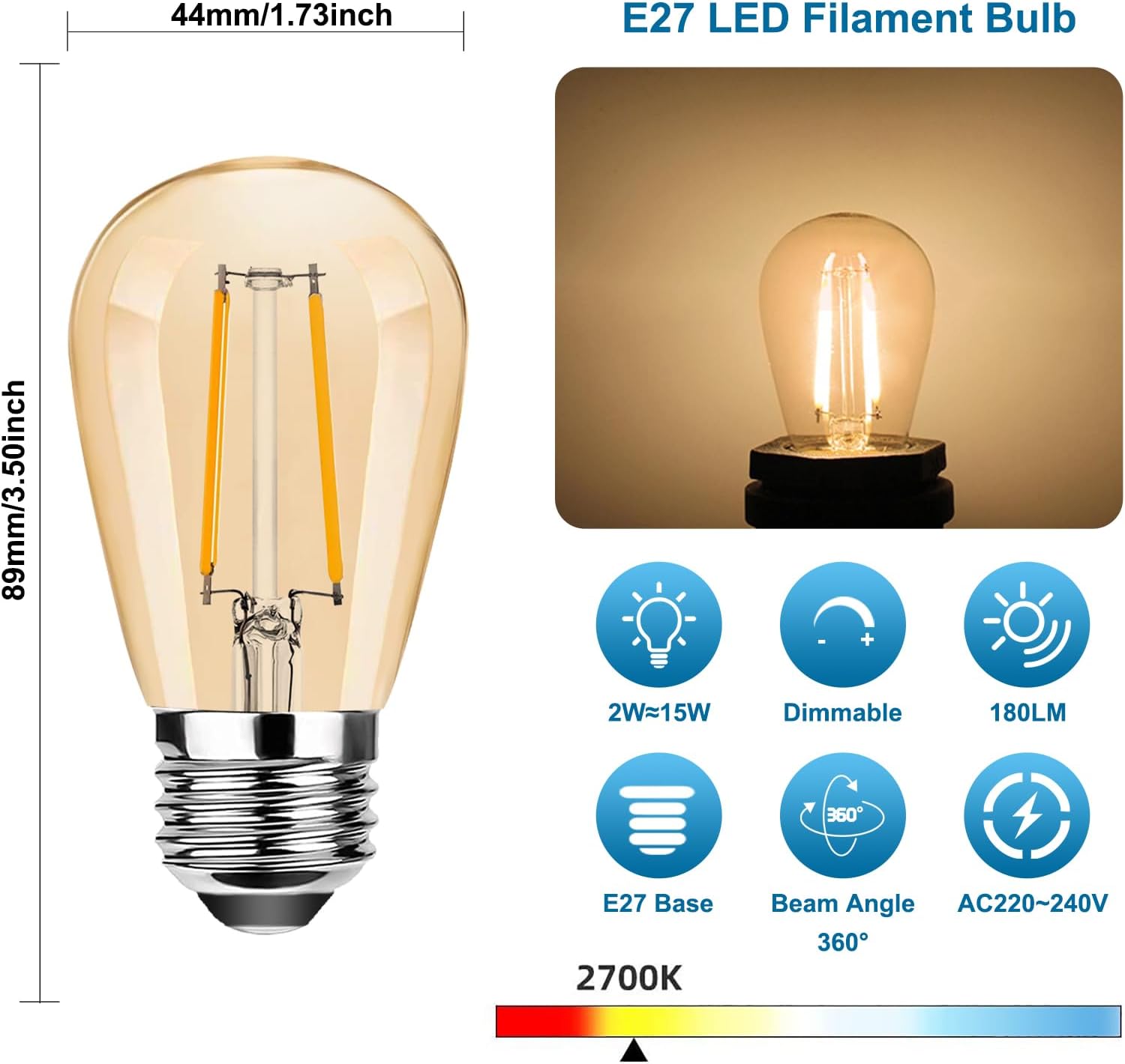 Despre acest articol Economisire de energie: bec LED E27 de 2 wați cu bază cu șurub, echivalent cu un bec standard de 15 wați, economisește peste 80% din factura de energie electrică pentru iluminat. Ecologic și economisitor de energie: Înlocuiește becul standard de 15W pentru candelabre și diverse tipuri de lumini. Reduceți costurile de înlocuire frecventă a becurilor. Becul E27 Edison este fabricat din material de înaltă calitate, fără mercur, fără UV și IR, fără strălucire și fără pâlpâire. Fără pâlpâire: Fără timp de încălzire, porniți și luminozitate completă imediat. Fără pâlpâire, fiți blând cu ochii dvs. În plus, becul LED are o redare ridicată a culorilor (CRI > 80), care vă poate arăta culori vii și naturale. Instalare ușoară: Becul de sticlă transparentă de 2 wați în stil S14 este echipat cu un șurub standard Edison E27 și poate fi ușor instalat în corpurile de iluminat obișnuite E27. Bec LED vintage: Becul nostru LED de 2W are un abajur din sticlă și filament LED care păstrează designul becului tradițional Edison, dar utilizează tehnologia LED de economisire a energiei. Acesta are un aspect nostalgic fermecător. Alte detalii despre produs.