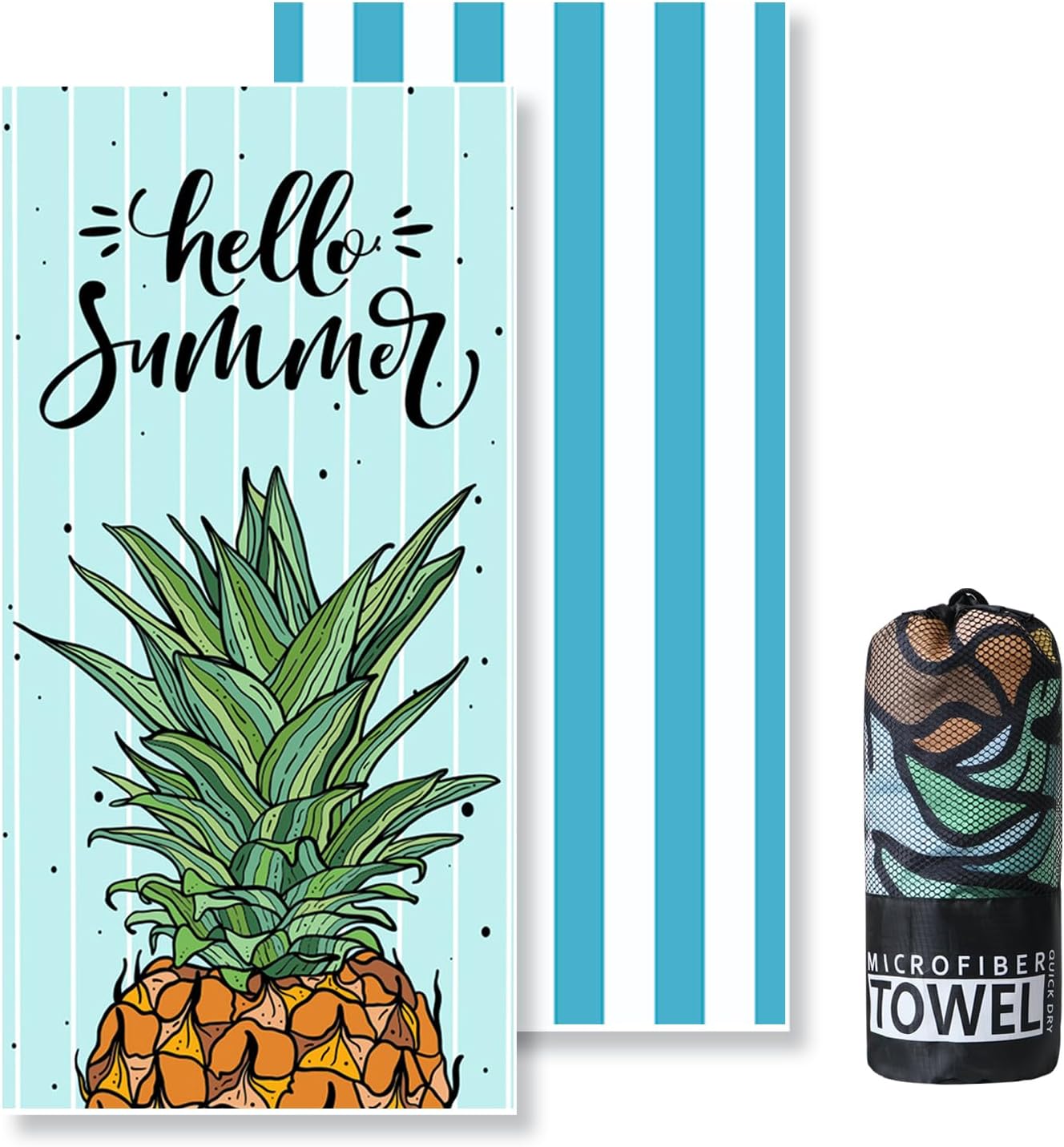 [RESIGILAT] Prosop plaja microfibra XXL cu sac depozitare ananas