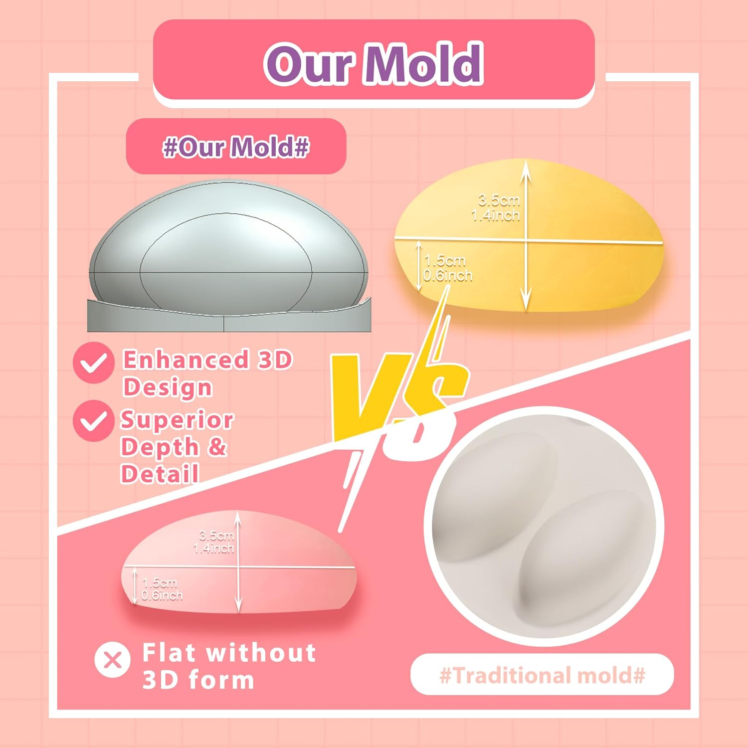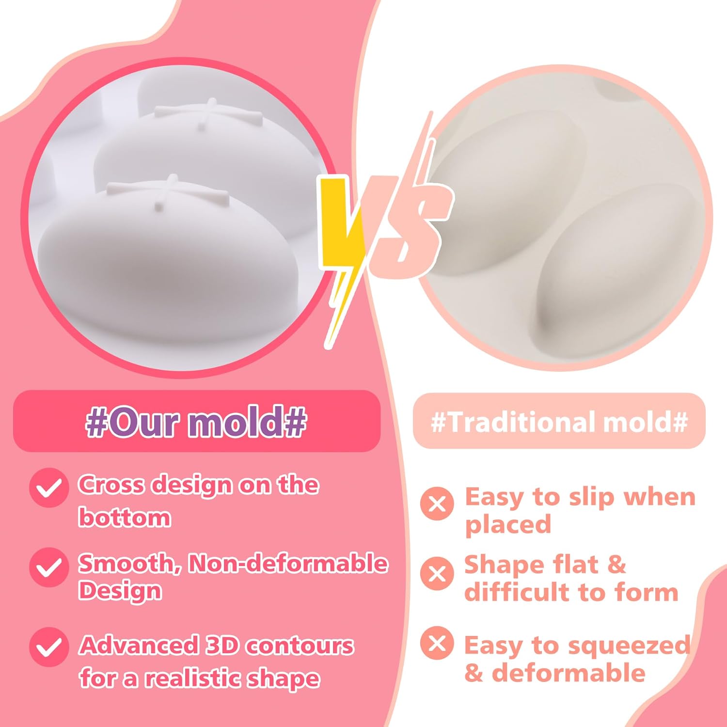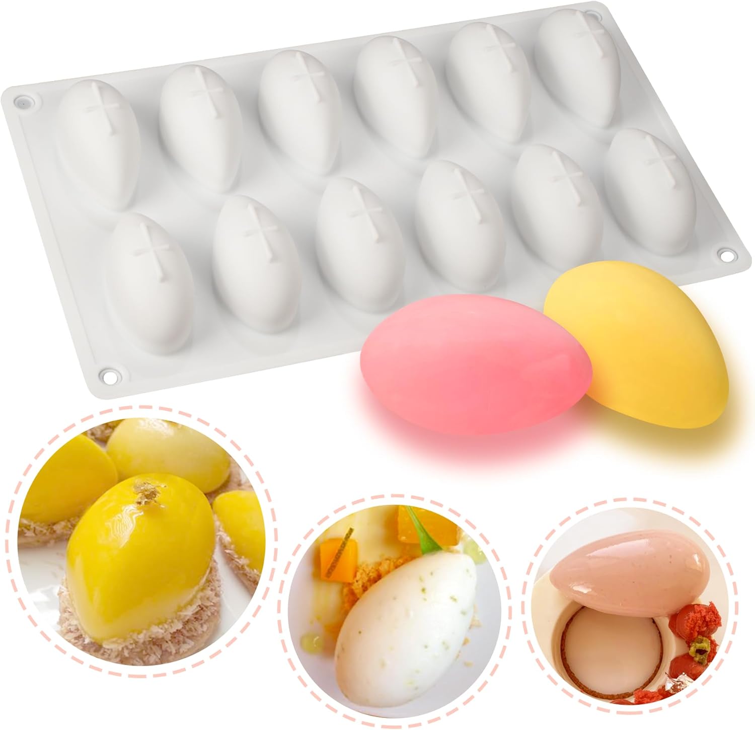 Despre acest articol Noua versiune are un design 3D îmbunătățit: Contururile 3D oferă o adâncime și detalii excepționale pentru o formă realistă. Designul în cruce de pe bază oferă stabilitate suplimentară și facilitează modelarea alimentelor. Suprafața netedă asigură o demobilizare ușoară. Dimensiuni: 32,7x18,4x4,2 cm; fiecare cavitate 7,3x4x3,5 cm cu volum de 27 ml(0,91oz, 5,4Tl) Matriță 3D pentru quenelle sau formă ovală. Matriță modernă pentru prăjituri sau ciocolată pentru entremets. Esențială pentru patiserie de casă; matriță de silicon pentru mousse, jeleu, produse de patiserie, dulciuri. Ideal pentru a face înghețată, frișcă, ciocolată fragilă, cheesecake, deserturi gourmet, iaurt, fudge, panna cotta, gelatină, glazură pentru prăjituri, quenelles de brochet, alimente keto etc. Pentru decorarea prăjiturilor/deserturilor: Pastă de flori, jeleu, marțipan, fondant, pastă de zahăr, dulciuri și ciocolată topite, înghețată etc. Pentru artizanat și hobby-uri: argilă de modelat (argilă uscată la aer, argilă de carton, argilă de rășină, argilă polimerică, argilă sărată, argilă metalică, argilă lichidă etc.), rășină (rășină epoxidică, rășină poliuretanică, rășină UV), beton, ciment, ipsos, săpun, lumânare, ceară, medii de amestecare etc. Fabricat la standardul UE din silicon european: mai puternic, mai flexibil și mai durabil pentru a-și menține forma originală și calitatea antiaderentă prin aplicații multiple. A trecut testul de presiune. Fără umpluturi albe atunci când este stors sau răsucit. Fără acoperiri chimice. Silicon alimentar pur, de înaltă calitate. Respectă standardele de siguranță americane FDA și europene LFGB. Fără BPA, PVC și ftalați. Ușor de utilizat, flexibil și ușor de curățat. Rezistent la cuptor, la mașina de spălat vase, la frigider. Potrivit pentru temperaturi între -40 și 220 de grade. Alte detalii despre produs