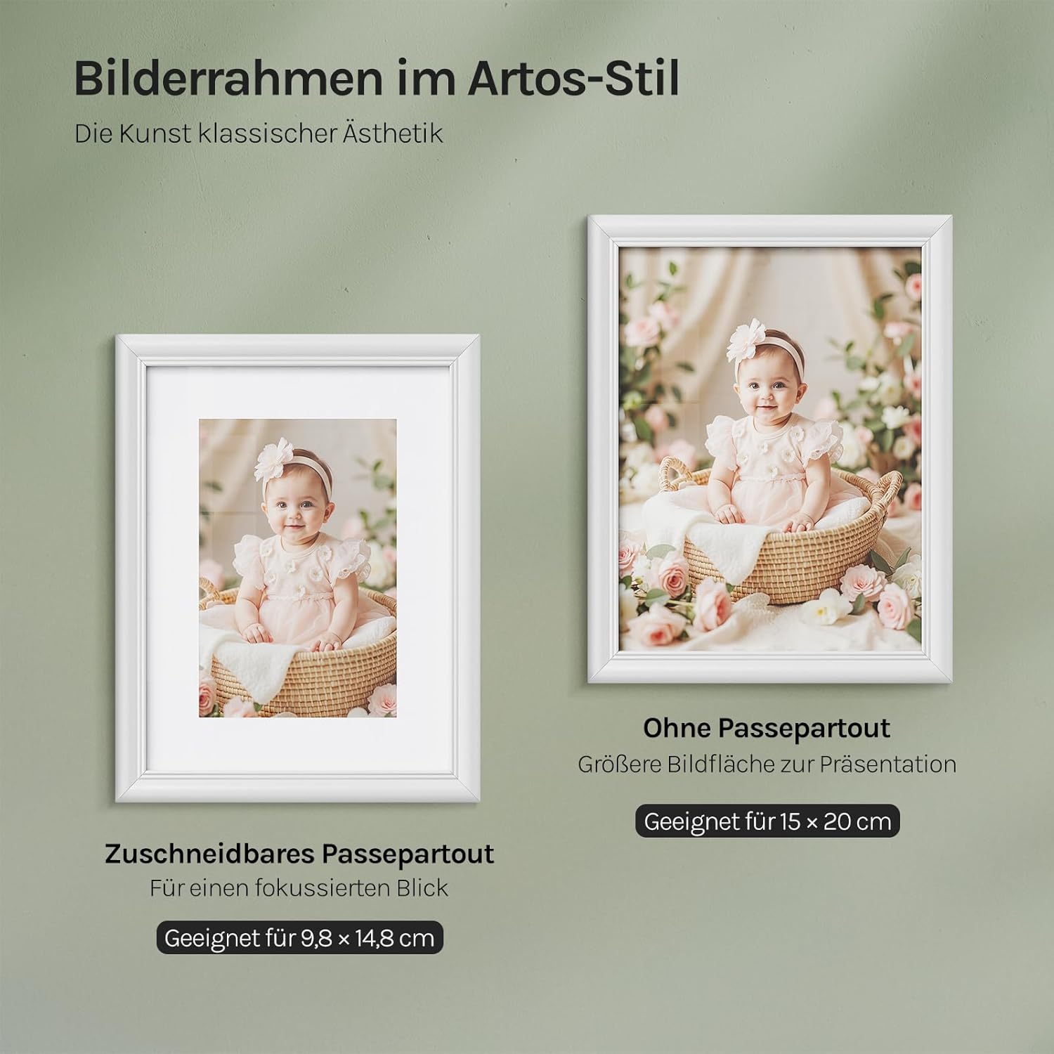 FORMATE VERSATILE ȘI PREZENTARE CREATIVĂ: Rama foto este disponibilă în peste 10 formate, inclusiv cele care pot conține fotografii în format 15x20 cm. Cu passe-partout alb pre-tăiat pentru prezentarea ușoară a fotografiilor mai mici. Creează un efect 3D și este perfectă pentru fotografii de familie, peisaje, desene pentru copii, etc.