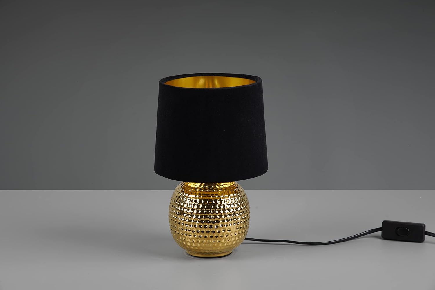 [RESIGILAT] Lampa de masa Sophia, baza ceramica aurie, abajur negru