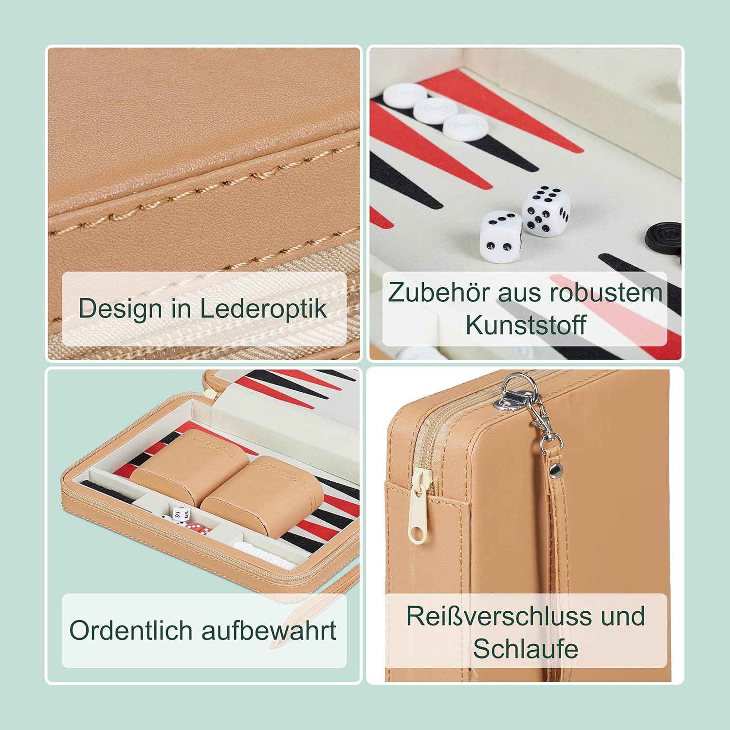 [RESIGILAT] Relaxdays Backgammon, joc calatorie, maro deschis
