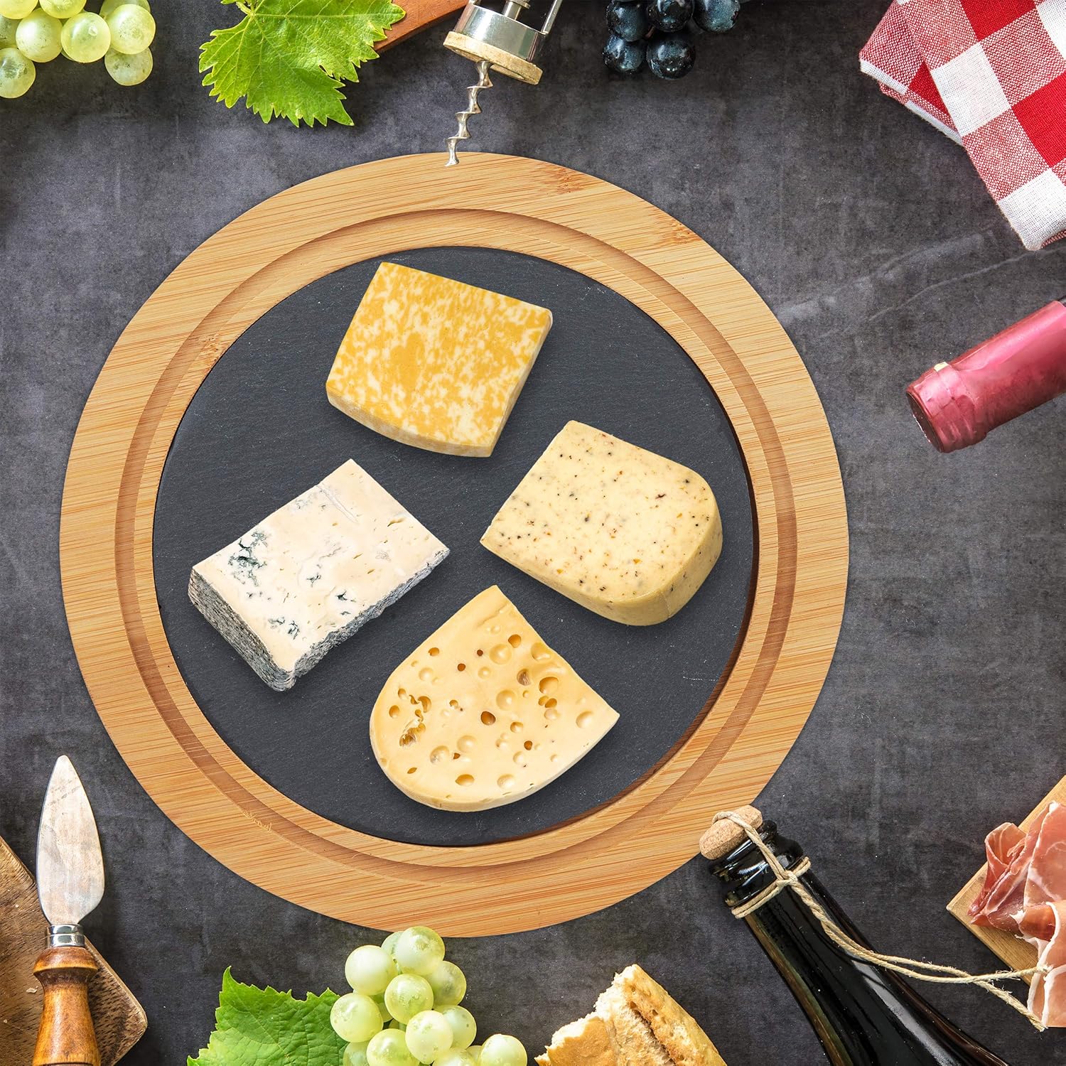 [RESIGILAT] Clopot de branza cu tacamuri din bambus si ardezie