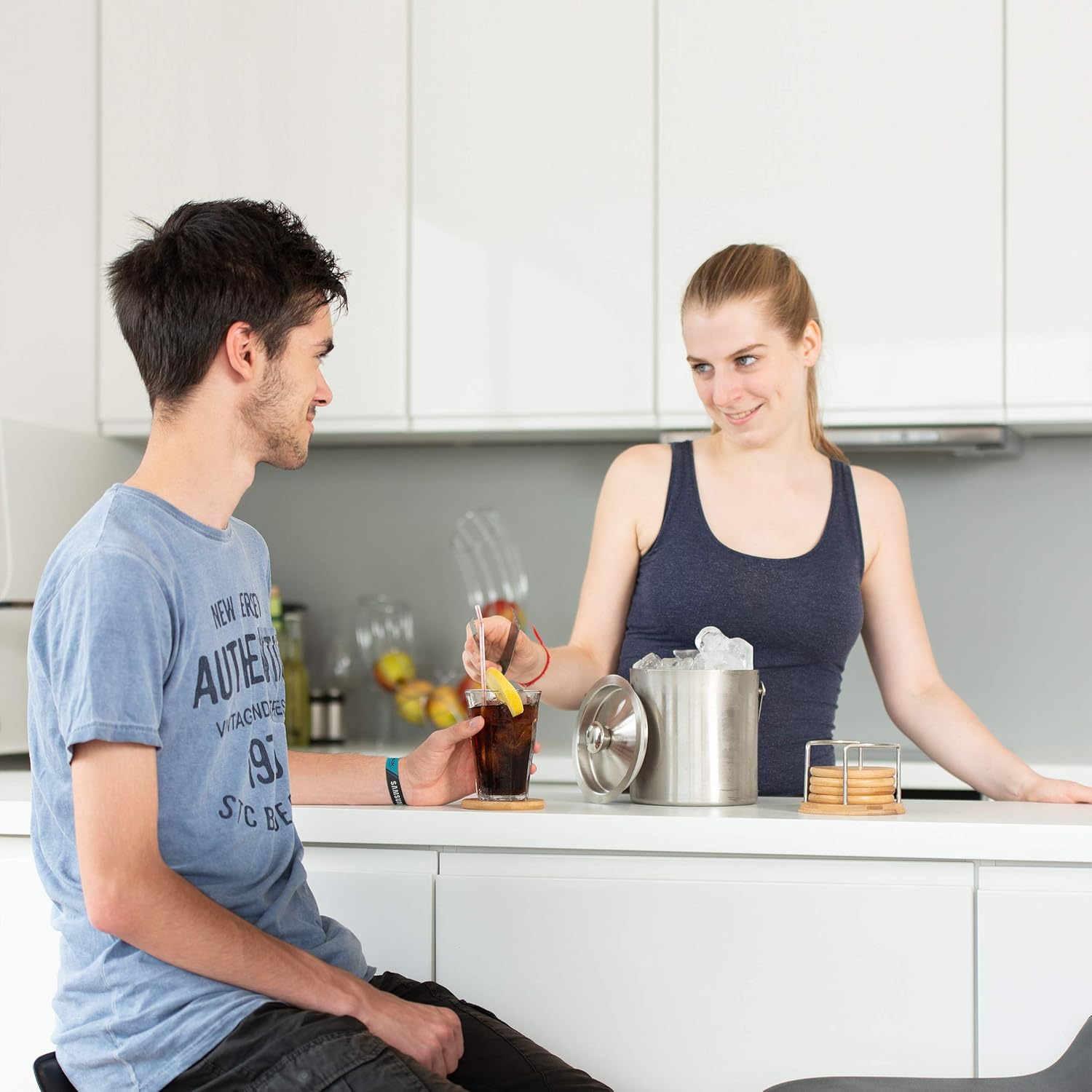 Descrierea produsului: Perfect pentru evenimente cu cocktailuri: Pentru petreceri sau seri cu cocktailuri acasă - Un răcitor de șampanie nu ar trebui să lipsească la aceste ocazii și vă scutește drumul la congelator. Protecție termică prin izolație: Găleata de gheață este fabricată din oțel inoxidabil cu pereți dubli și izolează perfect conținutul rece cu ajutorul capacului - Dimensiunile vasului H x L x A: aprox. 17 x 15 x 15 cm. Ușor de transportat: Mânerul facilitează transportul - Astfel aveți nevoie de o singură mână pentru a transporta și puteți deschide uși sau ține ceva suplimentar pe drumul spre reumplere. Inclusiv clește: Cleștele practic pentru gheață vă permite să scoateți și să porționați cuburile de gheață reci și adesea alunecoase fără probleme. Spațiu suficient: Cu o capacitate de 1,5 litri și un diametru interior de aprox. 13 cm, puteți păstra gheața spartă și cuburile de gheață reci pentru mai multe cocktailuri.