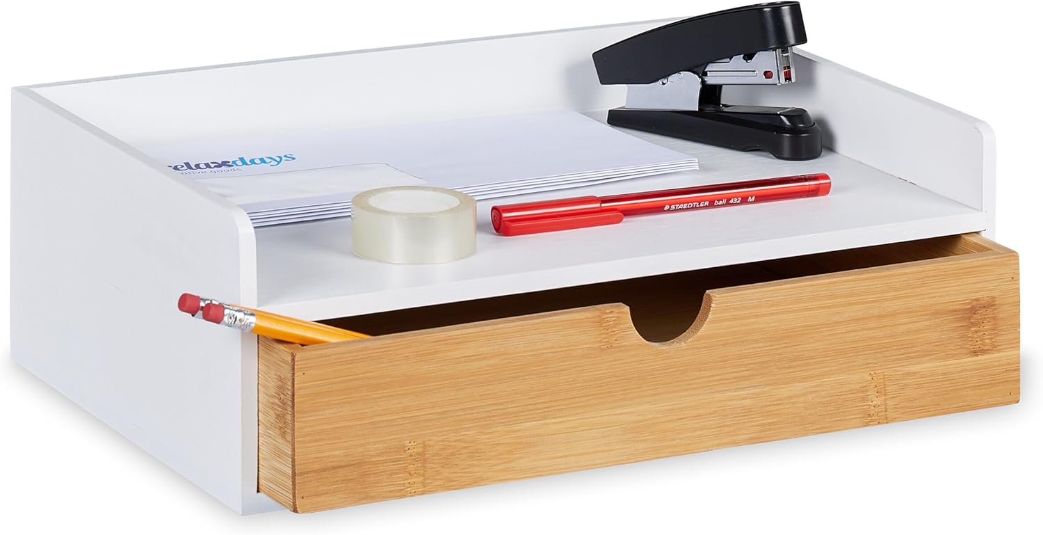 [RESIGILAT] Organizator Birou Relaxdays 32 cm, Bambus, Sertar Spațios