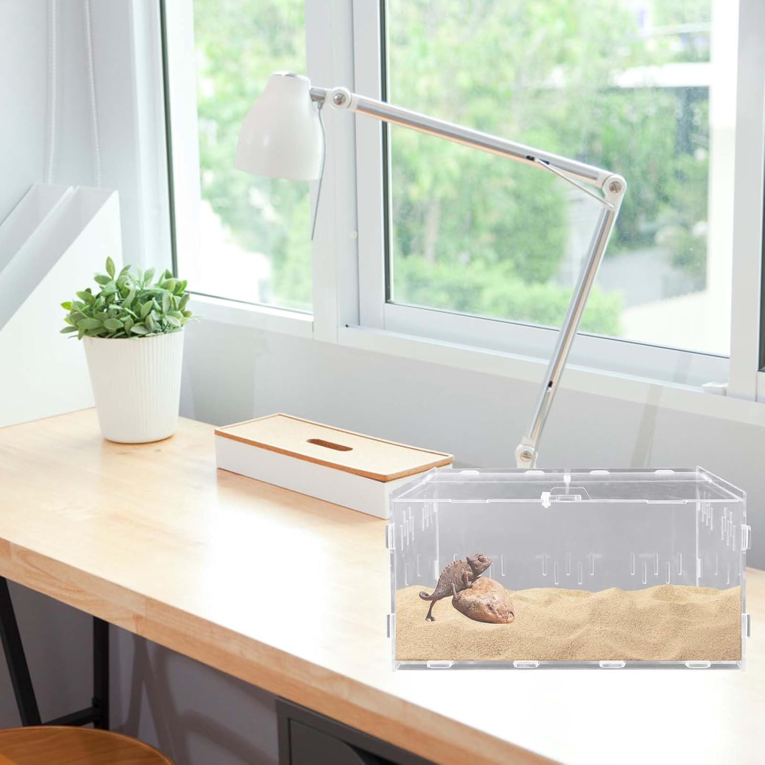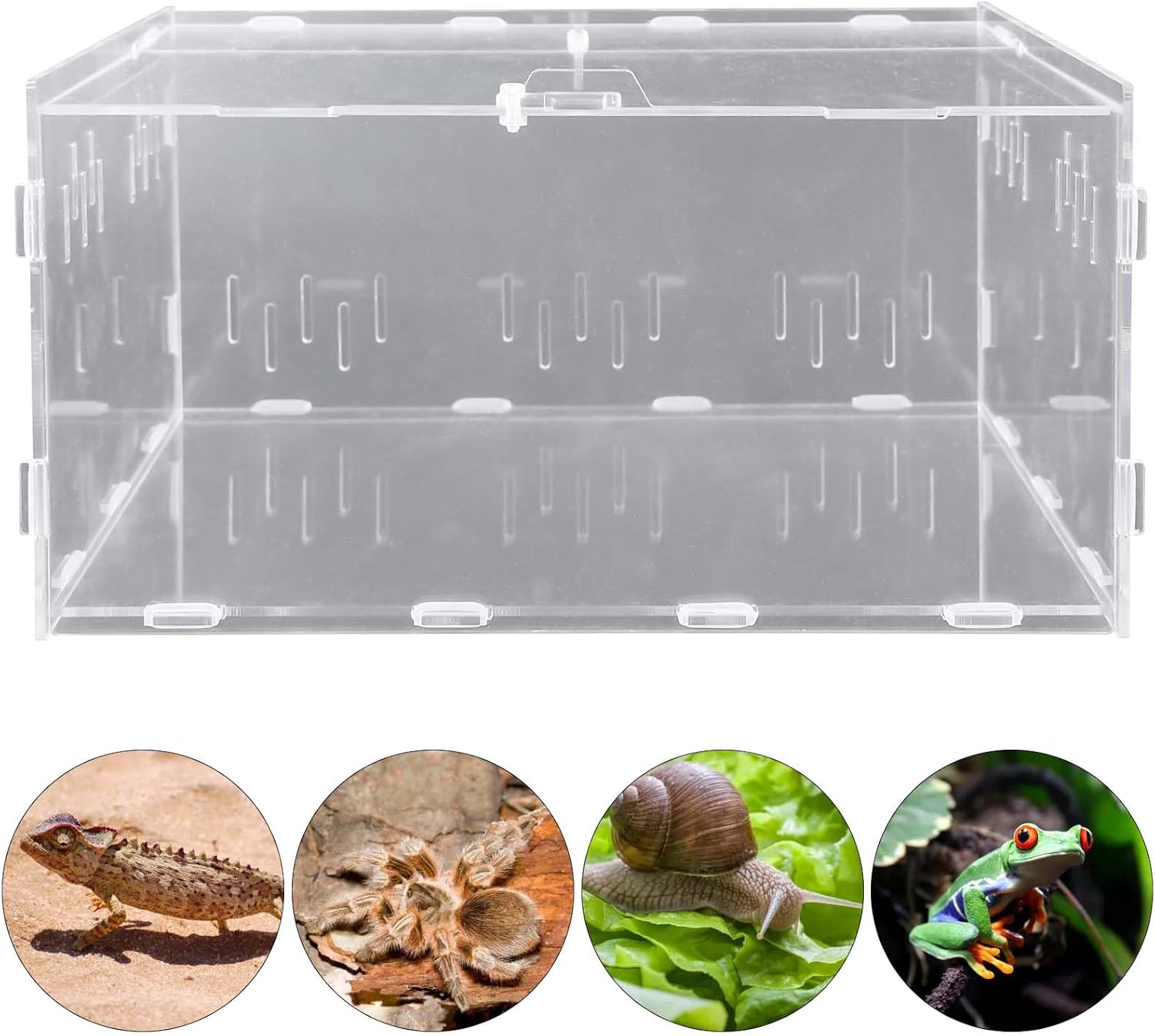 【Materiale de înaltă calitate】Terariul pentru melci este fabricat din acril transparent, este complet transparent la 360 de grade, clar și luminos, ușor de observat și curățat.