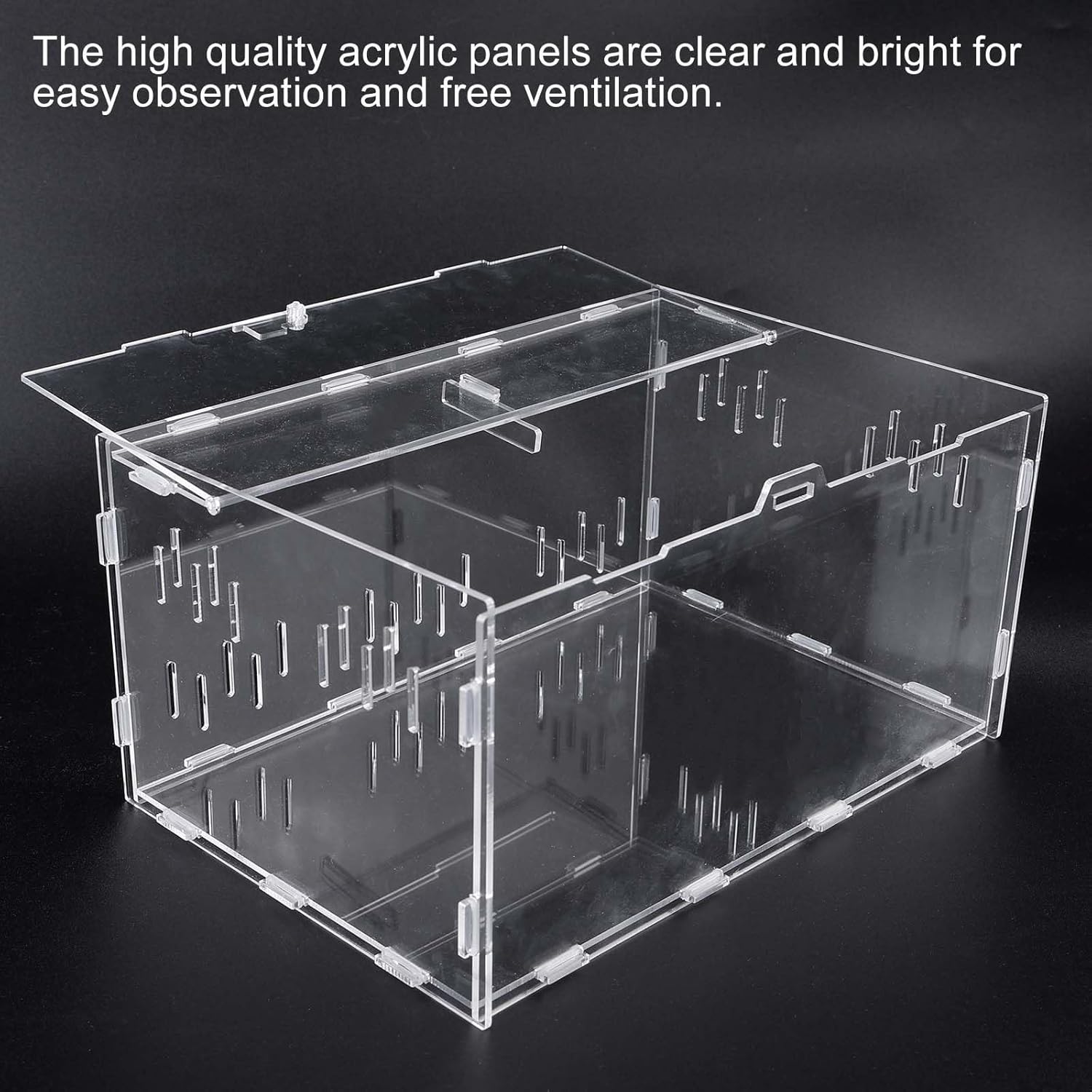 【Dimensiune perfectă】Dimensiunea cutiei acrilice pentru terariu de plante carnivore este de 30 x 20 x 15 cm, convenabilă și ușoară la deschiderea cutiei, se poate îngriji mai ușor de animalele de companie mici.