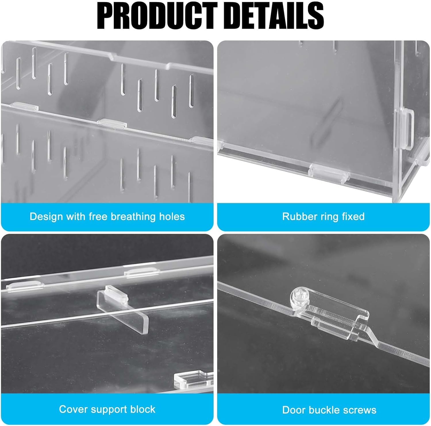 【Ventilație suficientă】Pe partea laterală a cutiei de hrănire există multe orificii mici de ventilație pentru a promova circulația aerului și a preveni evadarea animalelor.