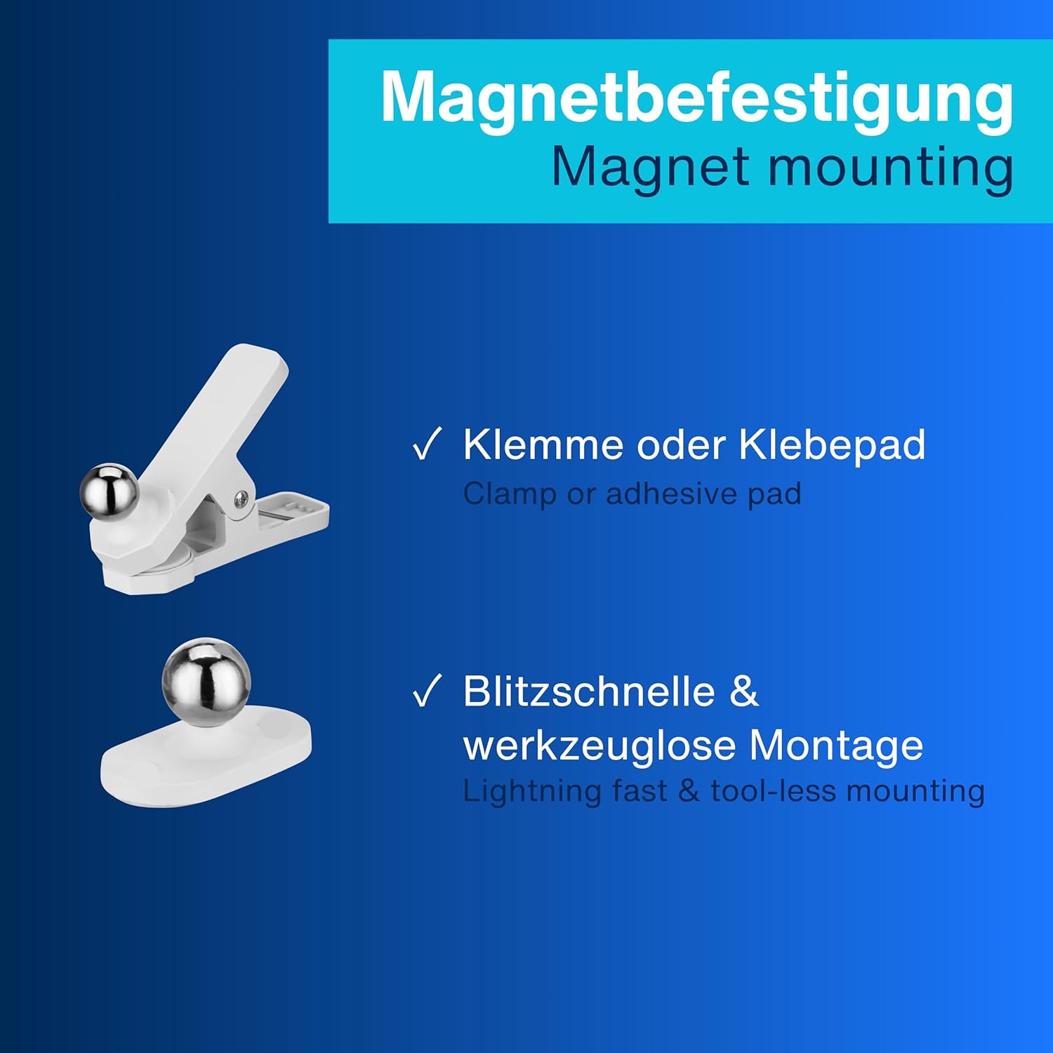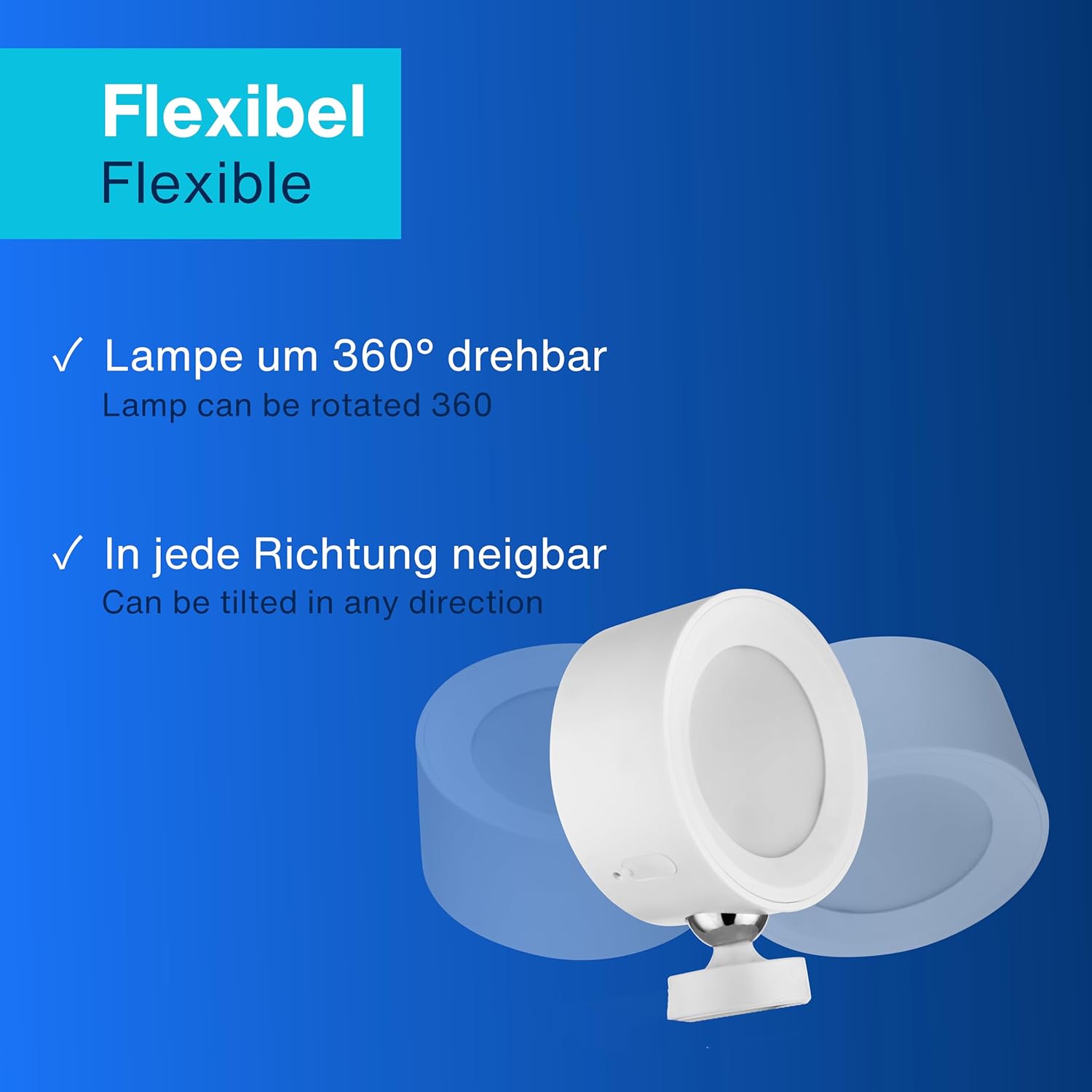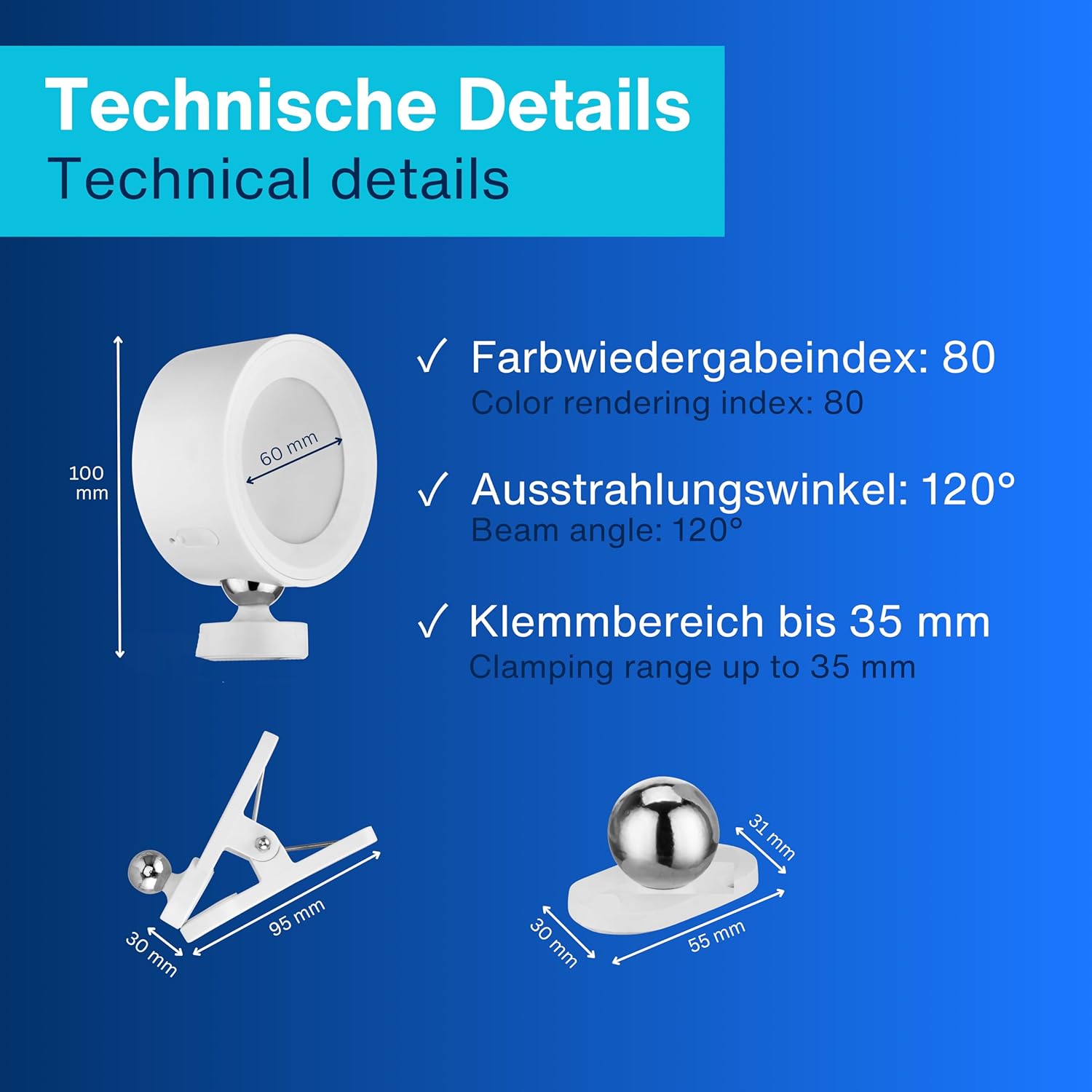 Despre acest articol Versatil: Lampă de perete compactă fără electricitate, realizată din carcasă din plastic robust. Cu clemă - lampă cu clemă ideală ca lumină pentru tablouri, lampă de pat, lampă de citit și multe altele Lumină personalizată: Comutatorul tactil încorporat vă permite să aprindeți și să stingeți convenabil lumina de perete fără fir și să o reduceți în trei trepte (50%, 80%, 100%) Rotativă la 360°: Lumina de perete reîncărcabilă poate fi rotită la 360 de grade datorită sferei magnetice, permițându-vă să direcționați lumina pentru a se potrivi cel mai bine nevoilor dvs. Atașare simplă: Datorită magnetului, lumina de perete LED poate fi montată rapid. Atașați suportul clipului sau placa adezivă/șurubată și așezați corpul de lumină deasupra Detalii suplimentare: Indicele de redare a culorilor (Ra/CRI): ≥ 80, unghi al fasciculului 120°. Durata de viață a LED-urilor aprox. 30.000h. Baterie litiu-ion 3,7 V, 2.000 mAh, autonomie 3h. Dimensiuni (LxWxH): 75x75x40mm. Greutate: 213g Alte detalii despre produs