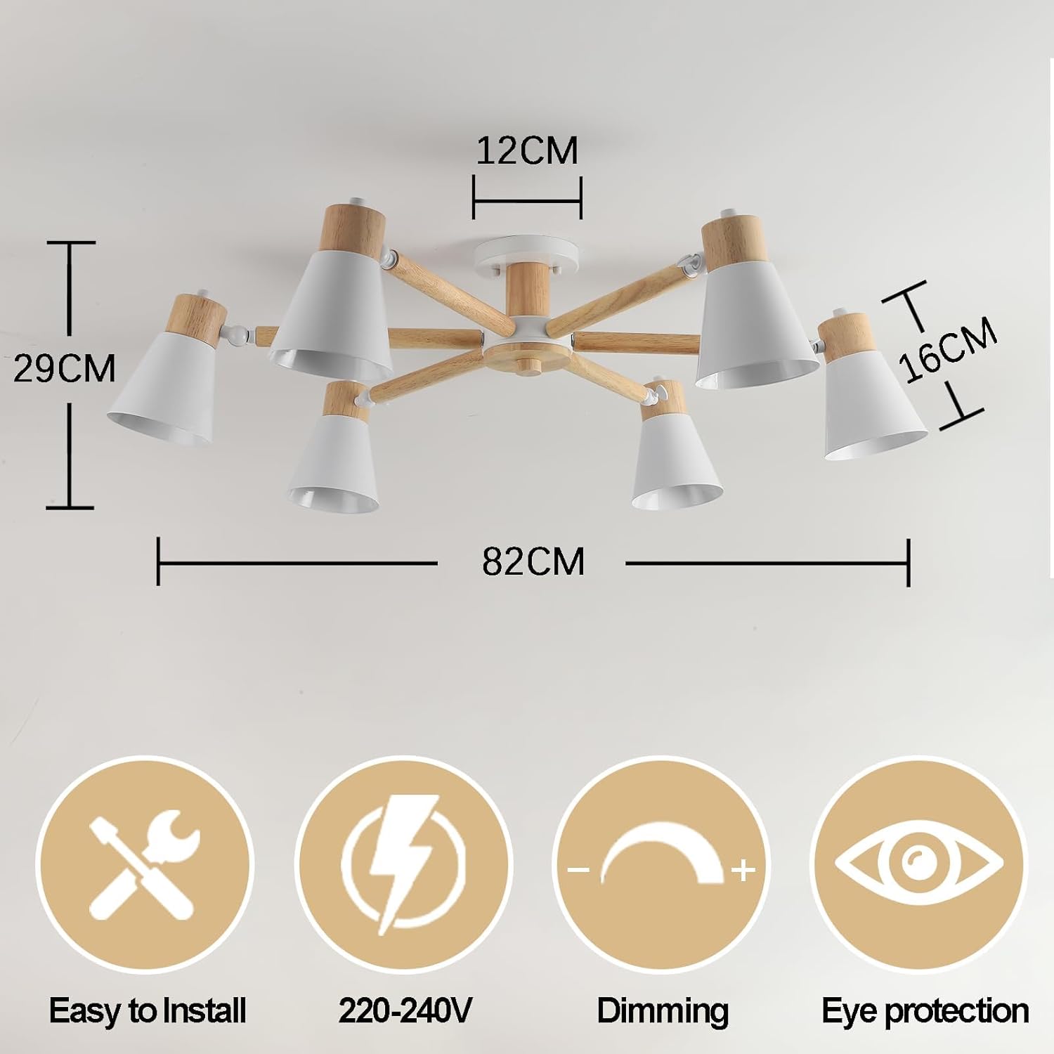 【Materiale de înaltă calitate】: Această lampă de tavan pentru camera de zi este fabricată din metal de înaltă calitate și materiale din lemn masiv pentru a asigura durabilitatea sa solidă. În același timp, această combinație de materiale adaugă, de asemenea, un stil natural și modern, făcându-l un decor de casă practic și la modă. 【Opțiuni multiple】: Aceste plafoniere pentru camera de zi au 6 brațe de lampă, 6 abajururi și 3 brațe de lampă, 3 abajururi. Cele două specificații sunt disponibile și există trei culori: negru, alb și verde. Dimensiunea este de 82 x 29 cm/ 32,2 x 11,4 inch. Indiferent de specificațiile și culorile care vă plac, puteți să vă satisfaceți nevoile personalizate. 【Lampă flexibilă reglabilă】: Această lampă de tavan dormitor poate fi reglată astfel încât să puteți alege cea mai bună metodă de iluminare, după cum este necesar. Această lampă de plafon dormitor utilizează o bază E27, care este potrivită pentru lampa E27 (fără bec). După instalarea becului, acesta poate crea o atmosferă caldă în cameră, care completează elementele din lemn din interior. 【Instalare ușoară】: Instalarea bucătăriei noastre cu lampă de tavan este foarte simplă, incluzând tot hardware-ul de instalare, astfel încât să vă puteți bucura imediat de efectele de iluminare și decorative. Materialele metalice din lemn îl fac o alegere ideală pentru a crea o casă caldă. Experimentați stilul de viață simplu și simțiți natura și frumusețea aduse de lămpile din lemn. 【Multi -scenariu se aplică】: Această lampă de tavan pentru camera de zi este potrivită pentru dormitor, coridor, scări, bucătărie, birou și alte ocazii. Fie că este folosit pentru decorare sau iluminare, poate aduce efecte excelente camerei și vă permite să vă bucurați de o atmosferă caldă și confortabilă. Alte detalii despre produs