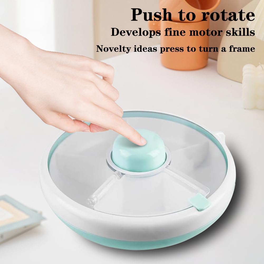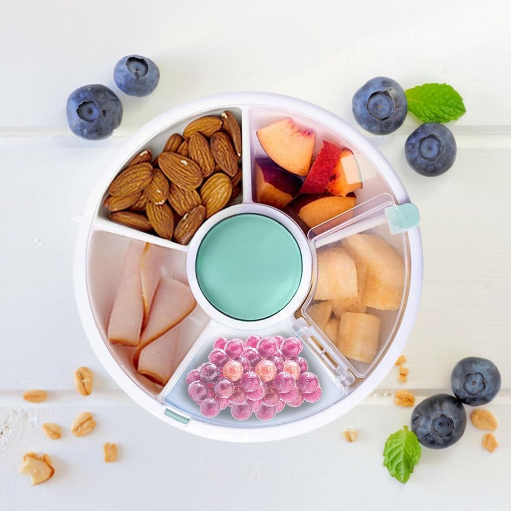 Despre acest articol Porții perfecte: Fiecare compartiment 1/4 cană de alimente solide. Folosit pentru a crea varietate, mese echilibrate distractive și pentru a tenta copiii să încerce alimente noi într-un mod distractiv și fără stres. Ușor de călătorit: Fără stres, portabil și dimensionat practic, acest recipient de gustări divizat este perfect pentru călătorii. Capacul transparent, etanș la aer și la scurgeri reduce mizeria și reține alimentele solide. Sigur și ușor de curățat: Toate materialele nu conțin BPA și PVC, oferind o soluție de hrănire fără griji. Fabricat din polipropilenă durabilă. Se poate spăla în mașina de spălat vase, în coșul superior. Repetați: 5 compartimente pentru gustări cu butoane interactive fac gustările o joacă de copii. Combinați-vă bolurile și cupele pentru gustări într-un recipient ușor de utilizat! Mai mult decât un simplu recipient pentru gustări: perfect pentru porții de dimensiunea unui copil mic. Butoanele interactive angajează copiii și îi ajută să-și dezvolte abilitățile motorii fine și grosiere, în timp ce aleg gustări în mod independent.