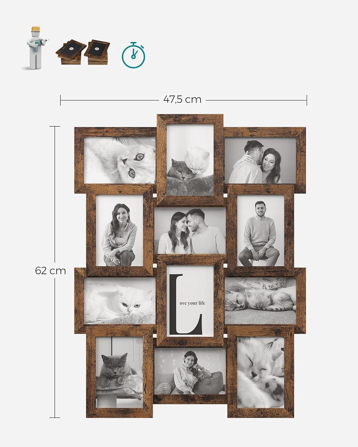 [RESIGILAT] Cadru colaj photo cu 12 rame maro vintage RPF026X01
