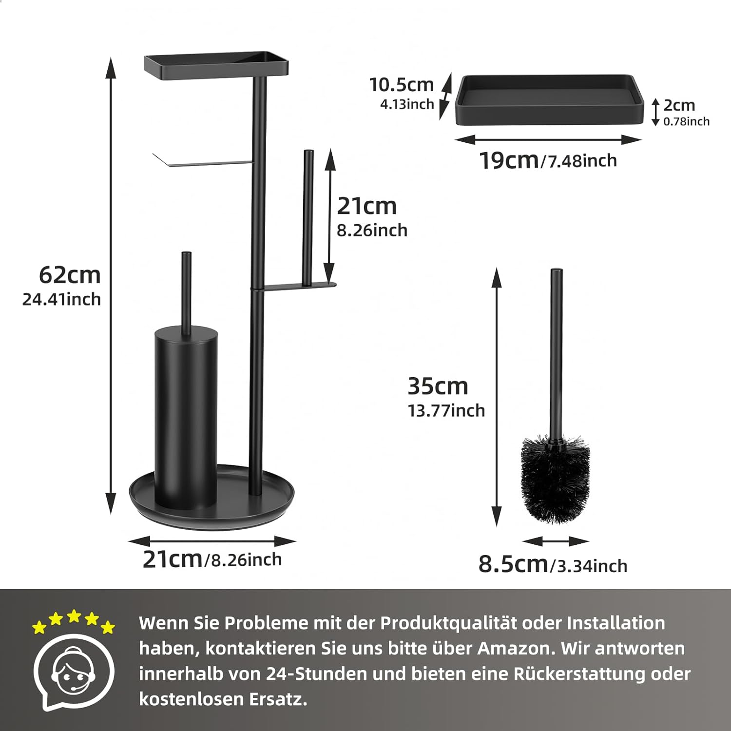 Despre acest articol 【Rezistent la rugină și durabil】: Suportul pentru rola de toaletă cu perie de toaletă este fabricat din oțel inoxidabil robust și plastic, oferind băii dvs. un aspect de înaltă calitate. Rezistent la rugină, durabil și ușor de curățat. 【 Suport îmbunătățit pentru rola de toaletă cu raft】 Suportul actualizat pentru rola de toaletă Susswiff cu raft vă permite să vă puneți telefonul sau alte obiecte decorative mici pe raft. Marginea cu barieră și covorașul EVA de pe raft împiedică alunecarea articolelor dvs. 【Fine Workmanship, Beautiful and Non-Cutting Hands】Suprafața de contact și marginile setului wc cu suport pentru hârtie igienică sunt lustruite și acoperite, ceea ce este de înaltă calitate și frumos și nu vă va tăia mâinile. 【Design detașabil】: Cu un suport detașabil pentru role de hârtie igienică de rezervă, pot fi stocate până la 2 role suplimentare de hârtie igienică de rezervă. Suport detașabil pentru peria de toaletă cu capac, frumos, răcoritor și ușor de curățat. 【Facil de instalat】: Suportul pentru role de toaletă în picioare poate fi montat fără găurire. După o instalare rapidă și ușoară, acesta poate fi plasat oriunde. Designul independent îl face convenabil să îl aduceți în baie sau în baia de oaspeți oricând, oriunde. Alte detalii despre produs