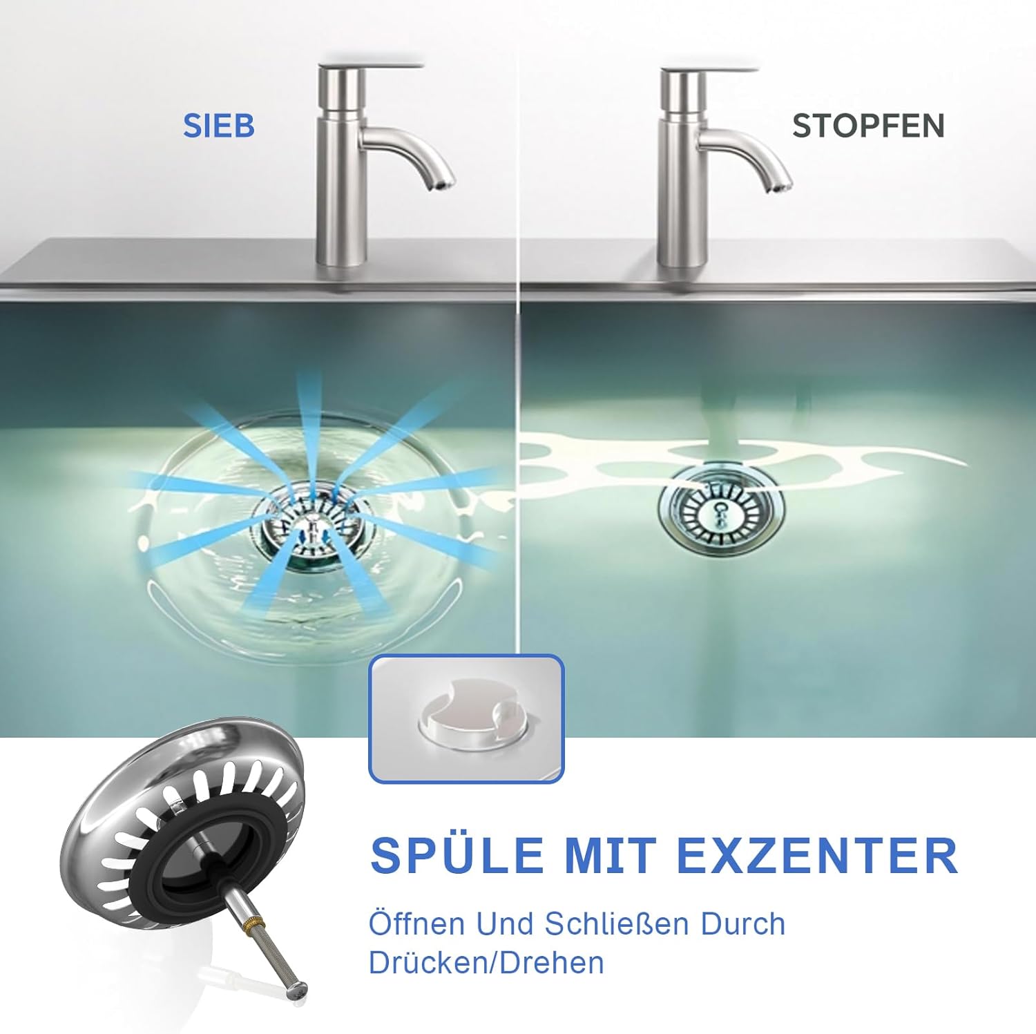 Oțel inoxidabil: Dopul de chiuvetă este fabricat din oțel inoxidabil armat, este rezistent la coroziune, fără rugină, durabil și arată întotdeauna ca nou. Design simplu și elegant, potrivit pentru diferite stiluri de bucătărie.