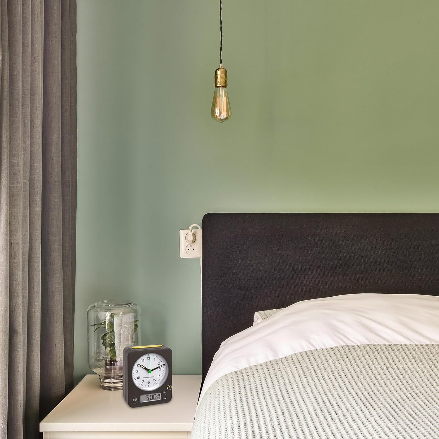 Informații despre acest articol Analogic: Afișaj analogic al orei curente cu mâini luminescente și cadran ușor de citit Alarmă digitală: Alarma este setată digital și poate fi specificată la minut, tonul alarmei începe încet și devine din ce în ce mai puternic (crescendo) Ceas radiocomandat: Datorită recepției radio DCF77, ceasul cu alarmă funcționează cu precizie maximă; se poate face setarea fusului orar (-9 ore) Funcționare: Funcționare foarte simplă cu butoane silențioase și iluminare de fundal pe tot parcursul nopții prin apăsarea unui buton Domeniul de aplicare al livrării: Ceasul cu alarmă controlat prin radio și instrucțiunile de utilizare sunt incluse în domeniul de aplicare al livrării, bateriile (3 x 1,5 V AA) trebuie comandate separat Alte detalii despre produs