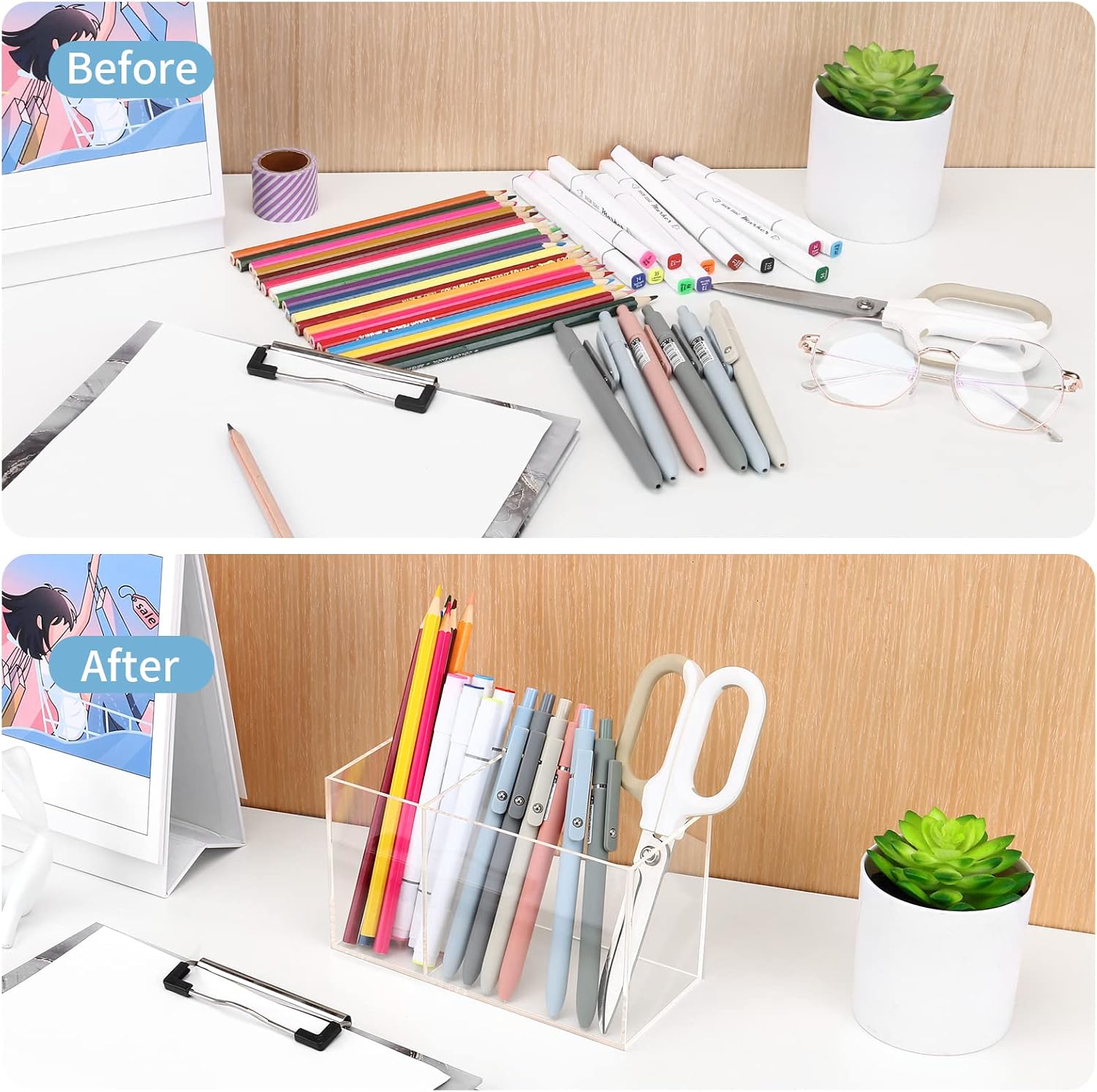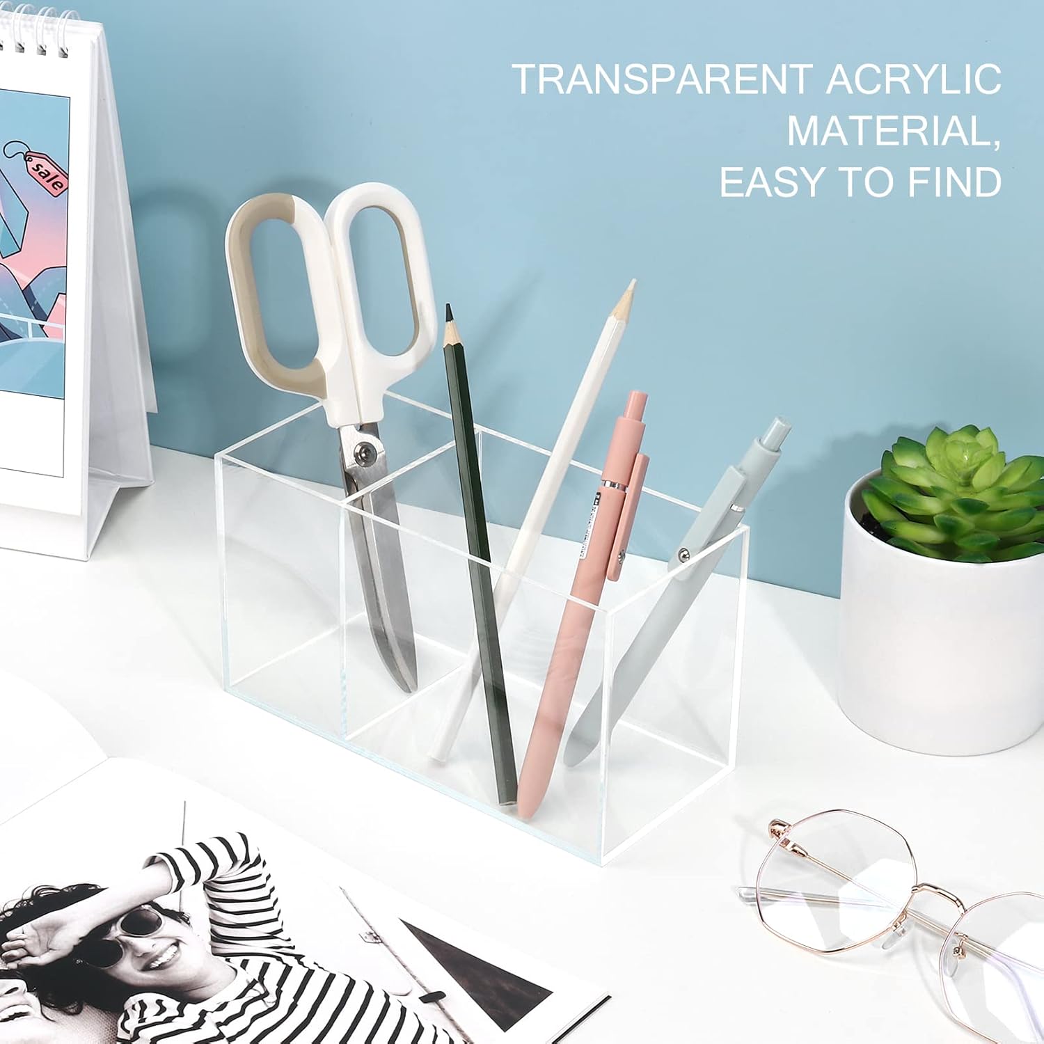 Menține-ți biroul ordonat și elegant cu acest suport acrilic transparent, ideal pentru pixuri, creioane și alte consumabile de birou. Designul său simplu și transparent permite vizualizarea rapidă a conținutului, oferind un acces facil și organizare eficientă.