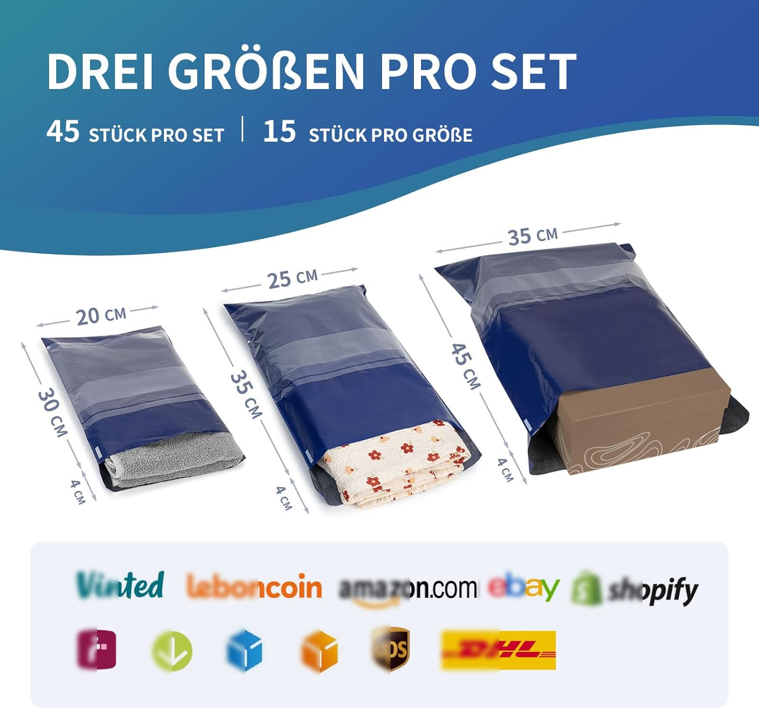 Despre acest articol: 45 DE PACHETE ÎN 3 DIMENSIUNI DIFERITE - Cu dimensiuni de 20x30cm (15 bucăți) + 25x35cm (15 bucăți) + 35x45cm (15 bucăți), pungile noastre de curierat au, de asemenea, un clapet de 4 cm lățime. Vă rugăm să confirmați dimensiunea înainte de cumpărare. ECONOMISIȚI BANI - Deoarece pungile de curierat sunt impermeabile, nu trebuie să vă faceți griji că articolele dvs. se udă chiar și în zilele ploioase. În plus, pungile noastre din plastic sunt ușoare, astfel încât puteți economisi costurile de transport. Spuneți la revedere pachetelor vechi și salutați viteza. MATERIALE DE ÎNALTĂ CALITATE - Pungile noastre sunt fabricate din polietilenă de înaltă calitate, care este ecologică, durabilă și rezistentă la rupere. Materialul opac împiedică vizibilitatea conținutului din exterior și asigură confidențialitatea livrărilor dumneavoastră. Fiecare pungă este prevăzută cu o bandă adezivă puternică care asigură o închidere sigură și permanentă. SUPORTUL MAGAZINULUI DVS. ONLINE - Culorile atemporale și rafinate ale pungilor noastre de curierat, împreună cu cuvântul „Mulțumesc” în mai multe limbi, vă fac de neuitat. Detașați-vă de concurență. Suprafața netedă a pungii de curierat permite scrierea mesajelor de salut, etichetelor, textului DIY sau lăsarea de marcaje pe ambalaj. PERFECT PENTRU DIVERSE CERINȚE DE EXPEDIERE - Perfect pentru expedierea hainelor, cutiilor, încălțămintei, cartonului. Perfect pentru poștă, colete, magazine online Vinted, plicuri și pachete, haine și cadouri, pot fi folosite și ca ambalaj cadou pentru Halloween, Ziua Recunoștinței, Crăciun, zile de naștere. › Mai multe detalii despre produs.