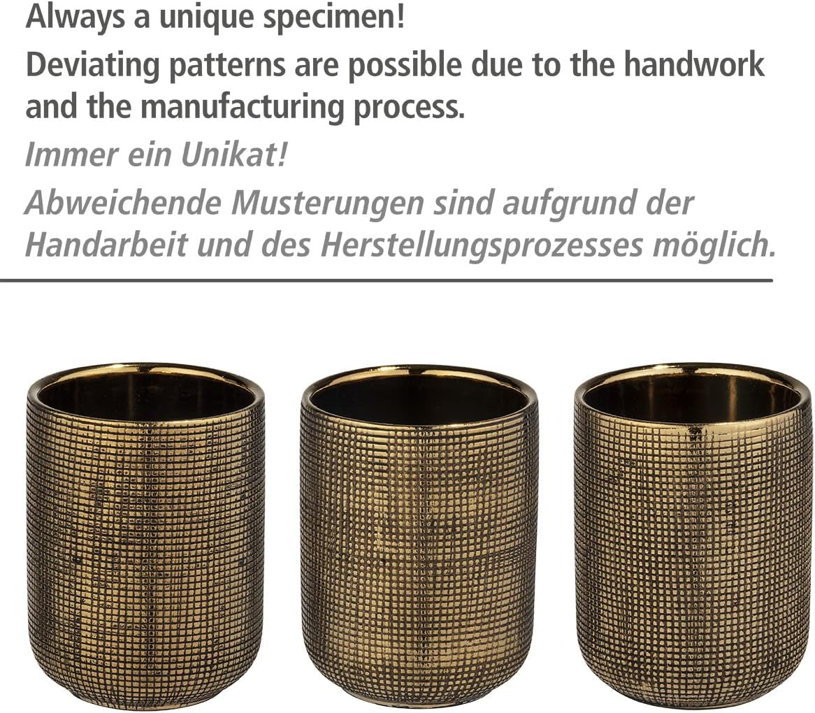 Despre acest articol Design elegant: Setul de toaletă atractiv Rivara de la WENKO, auriu, cu o suprafață texturată la modă, stabilește accente extravagante în baia dvs. și în WC-ul pentru oaspeți Funcție practică: Suportul deschis pentru peria de toaletă păstrează peria de toaletă la îndemână - peria furnizată cu cap de perie negru, înlocuibil (Ø 8 cm) și capac din silicon curăță bine Calitate înaltă: Folosim materiale de înaltă calitate pentru a ne asigura că vă puteți bucura de accesoriu pentru o lungă perioadă de timp - suportul pentru peria de toaletă este fabricat din ceramică de înaltă calitate și pictat manual Combinabil inteligent: Completați mobilierul de baie cu accesoriile de baie asortate din seria Rivara, cum ar fi recipientul pentru periuța de dinți, săpuniera sau dozatorul de săpun Pachetul de livrare: 1 x set de toaletă WENKO Rivara cu perie de toaletă neagră, dimensiuni (L/D x H): Ø 11,5 x 40 cm Alte detalii despre produs