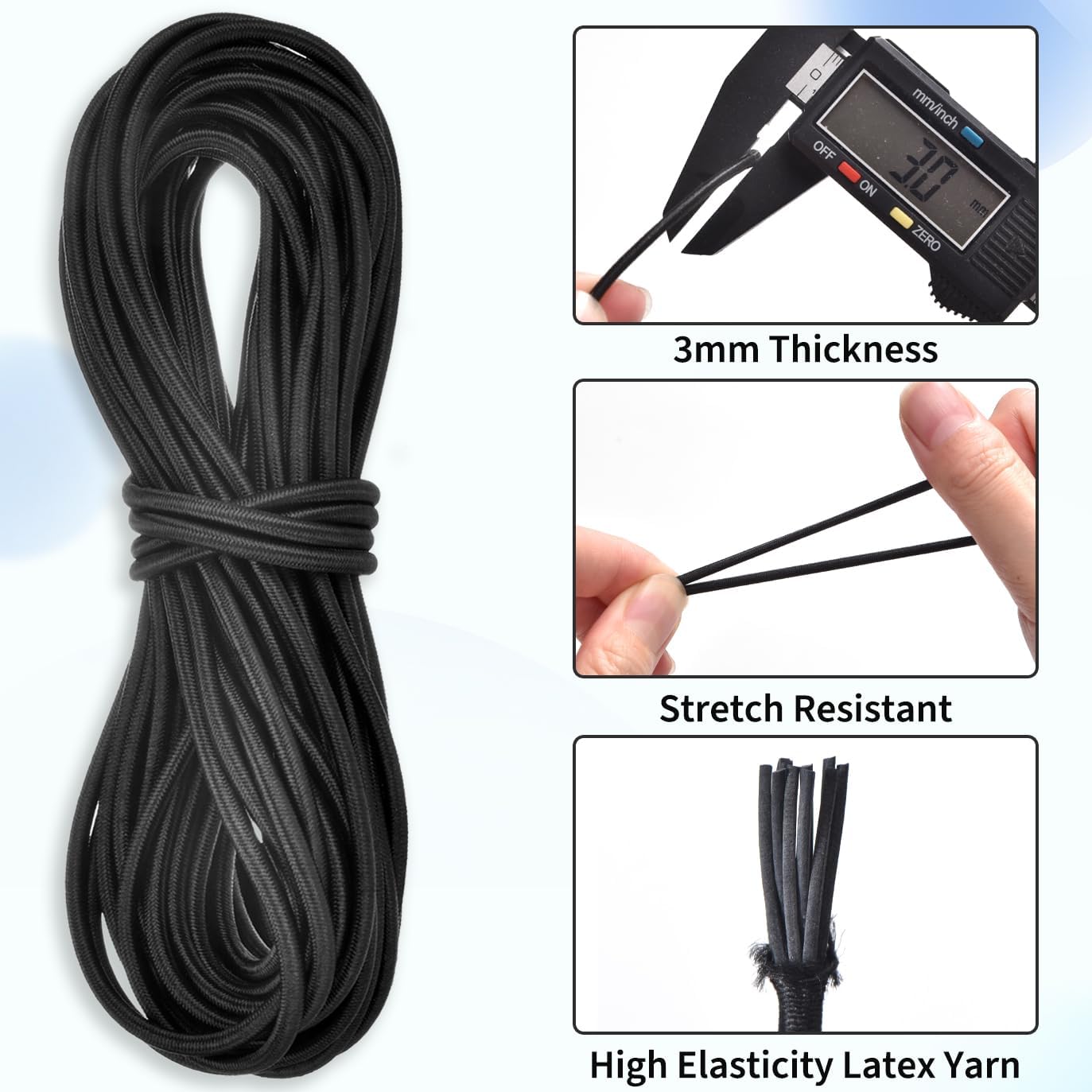 Lungime cordon elastic: 10 m, diametru 3 mm