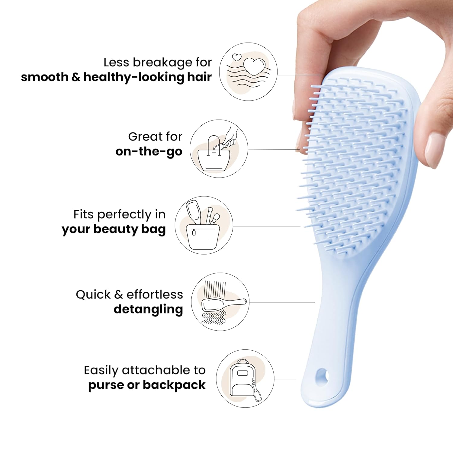 Perie de păr pentru toate tipurile de păr: Această perie mică face părul să pară mai plin și mai sănătos, cu gaură pentru cheie pentru a o atașa la geantă. Un accesoriu esențial pentru vacanță, care nu ar trebui să lipsească din nicio valiză. PERIE MICĂ DE PĂR: Echipează-ți accesoriile de călătorie cu micul Ultimate Detangler, perfect pentru copii – echipat cu 325 de peri în două trepte care alunecă fără efort prin părul umed sau uscat. PERIE DE DESCURCARE: Perii noștri inovatori, flexibili, în două trepte descurcă fără efort nodurile, minimizează ruperea părului, deteriorarea și încrețirea – sunt blânzi cu părul sensibil, proaspăt spălat și cu buclele uscate. TRATAMENT DE PĂR: Potrivită pentru părul drept, ondulat și creț – cu un mâner pentru o prindere fermă, această perie este ideală pentru a distribui uniform balsamul, tratamentul de păr sau masca de păr. RUTINA DE ÎNGRIJIRE A PĂRULUI: Pentru cele mai bune rezultate, pregătește-ți scalpul cu peria și masajul pentru scalp Tangle Teezer, folosește-ți peria de descurcare, apoi coafează cu peria noastră pentru uscare și pieptenele de coafat.