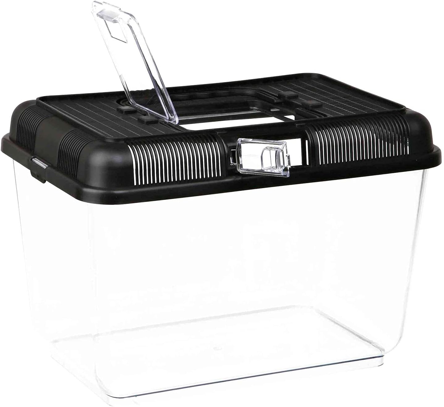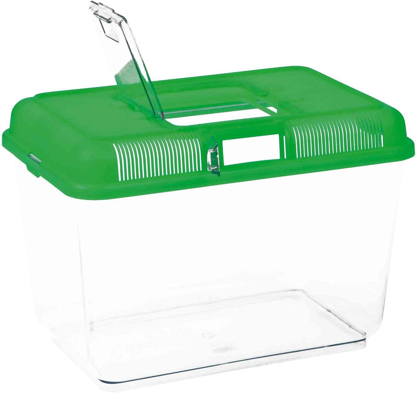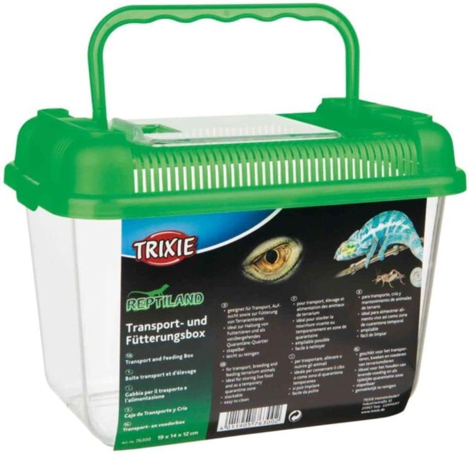 Cutia de transport și hrănire este fabricată din material plastic. Se poate utiliza pentru transportul, reproducerea și hrănirea reptilelor și amfibienilor. Este ideală pentru depozitarea hranei vii și ca zonă temporară de carantină. Ușor de curățat și este dotată cu mâner și deschidere pentru hrănire în capac. Ușa laterală suplimentară pentru hrănire permite hrănirea atunci când cutiile sunt stivuite. Măsoară 31 cm lungime x 21 cm lățime x 21 cm înălțime.