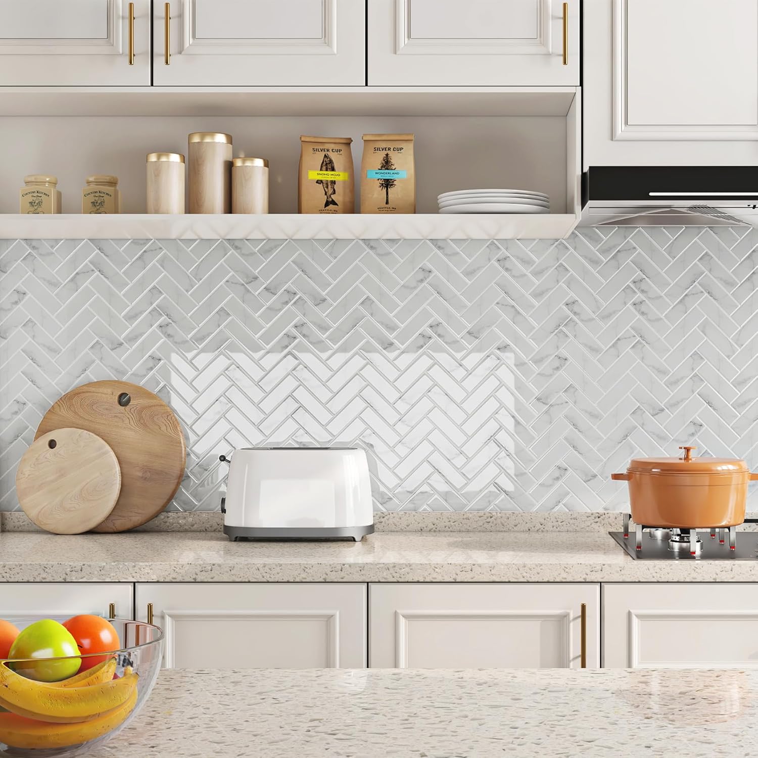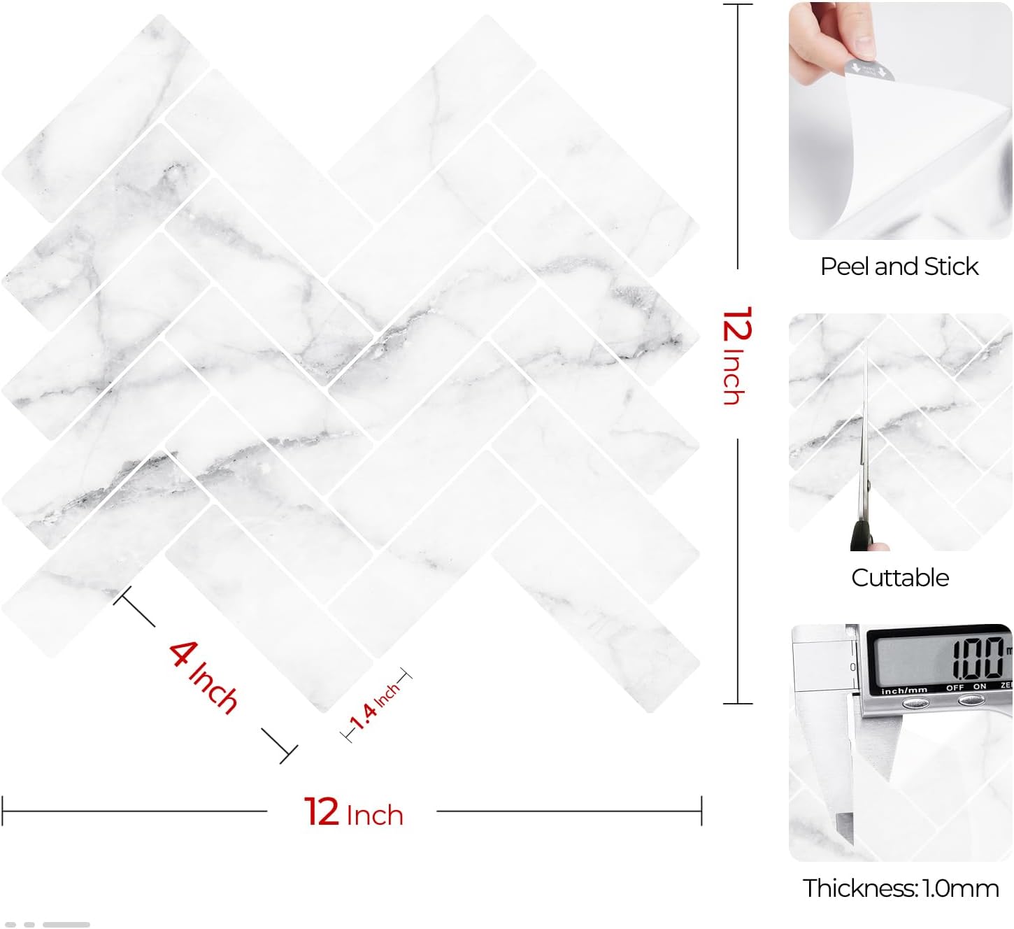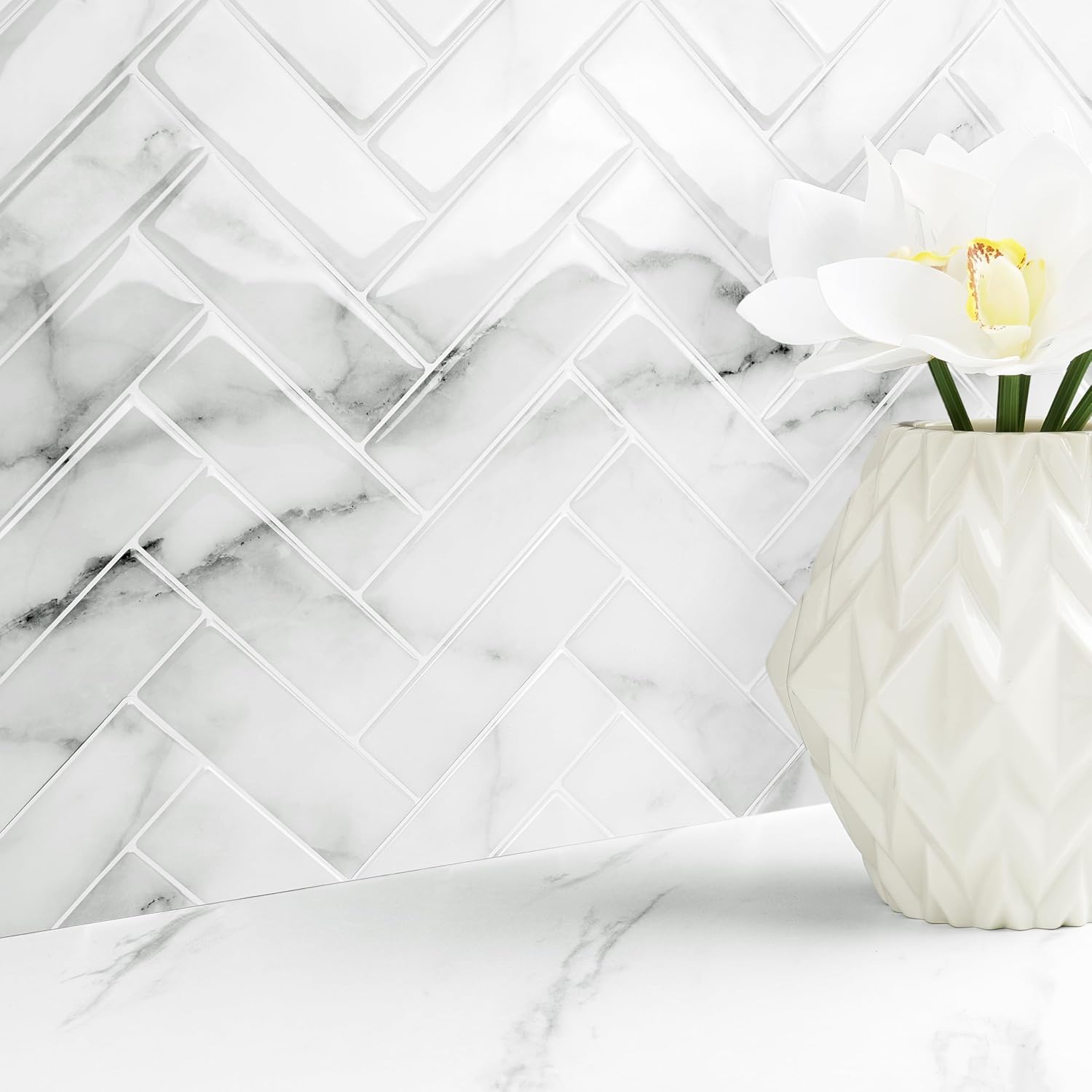 [RESIGILAT] Livelynine 3D tigla autocolanta Herringbone alba 30x30