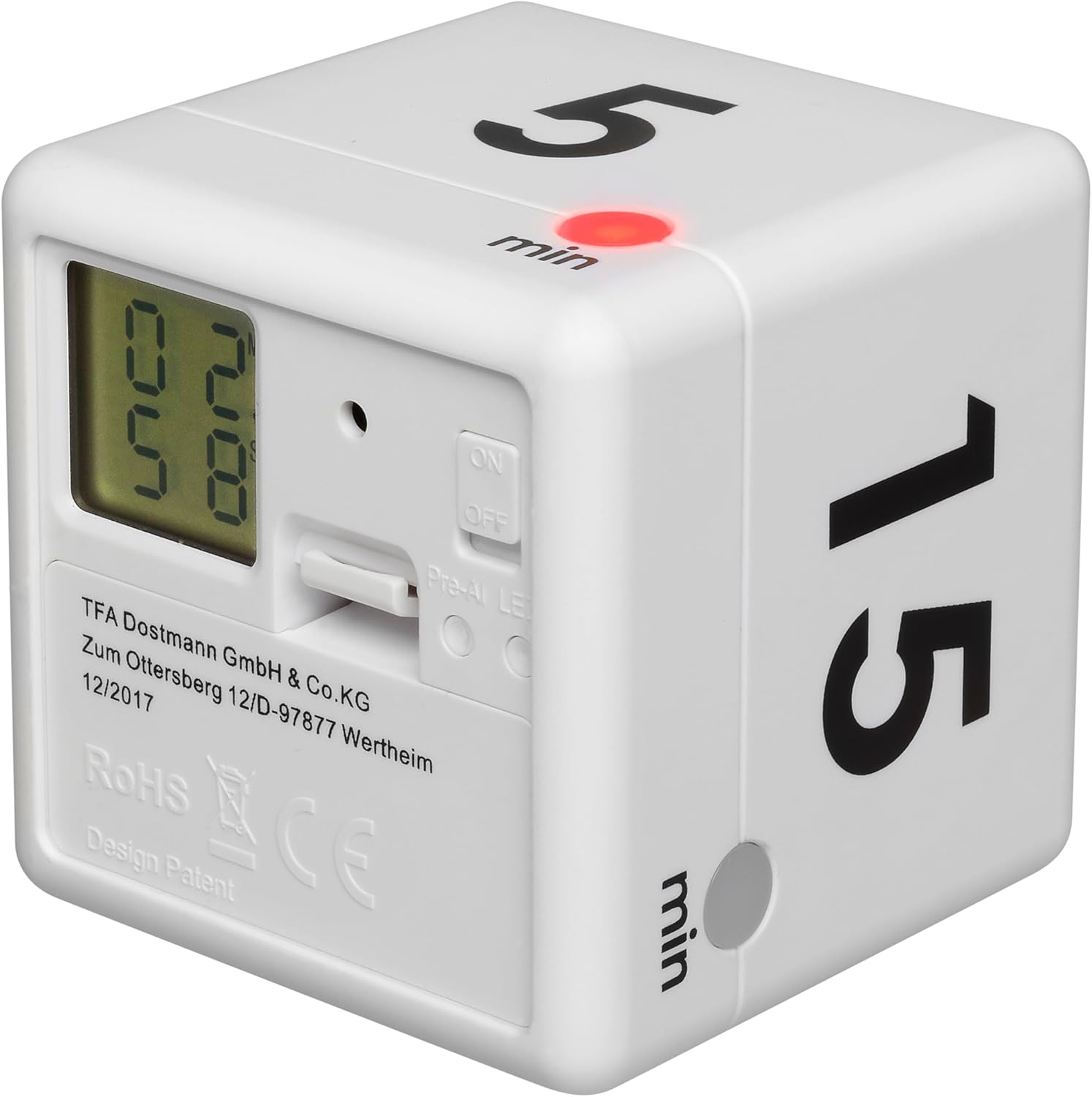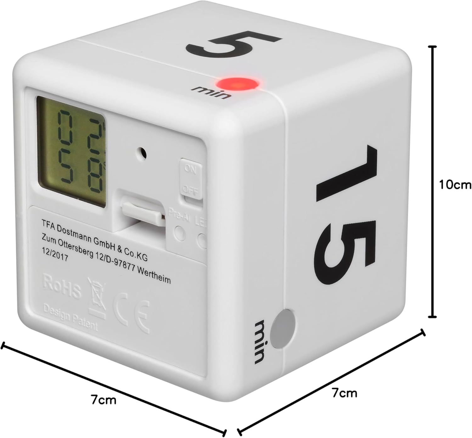 [RESIGILAT] Cronometru cub digital TFA alb 6x6 cm 38.2032.02