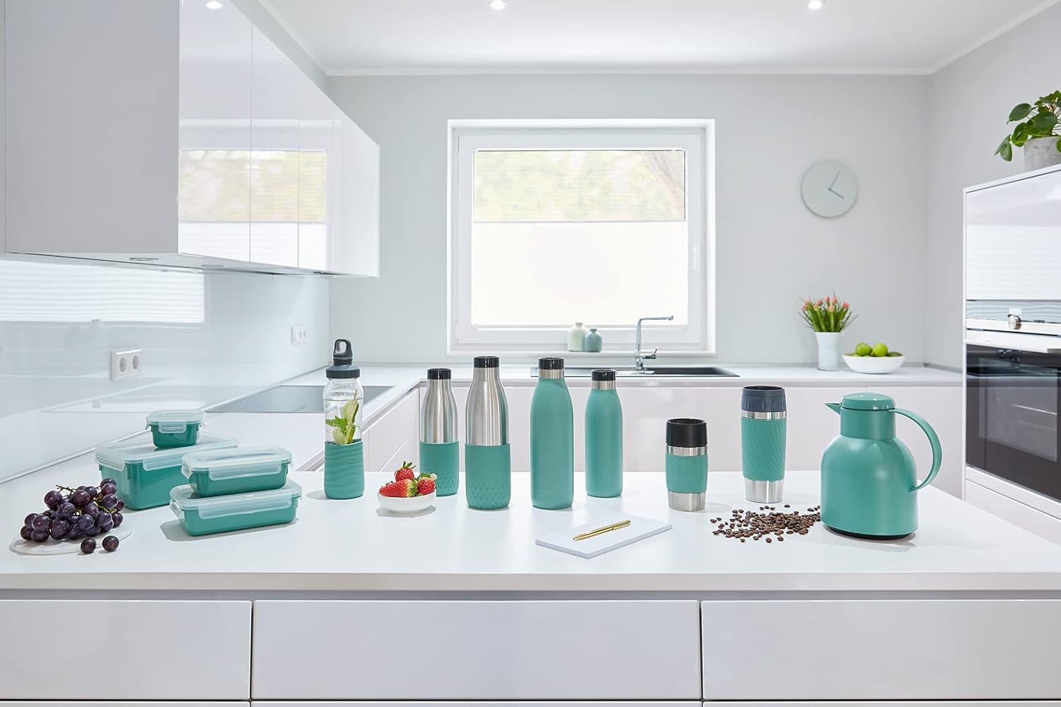 Spune adio sticlelor de plastic de unică folosință și optează pentru sticla de apă Bludrop de la Emsa. Această sticlă de apă reutilizabilă, cu acoperire durabilă în câmp electrostatic, este fabricată din oțel inoxidabil durabil și rezistent la rugină. Combină sustenabilitatea cu o estetică elegantă și asigură o plăcere a băutului respectuoasă cu mediul. Forma sa subțire, ergonomică și designul 100% etanș sunt perfecte pentru deplasări, în timp ce închiderea rapidă cu margine de băut la 360° permite băutul fără efort din toate părțile. IDEALĂ PENTRU TOATE TIPURILE DE BĂUTURI Această sticlă din oțel inoxidabil menține băuturile calde calde până la 12 ore și băuturile reci reci până la 24 de ore. De asemenea, este 100% sigură pentru mașina de spălat vase, pentru o curățare fără efort și o igienă optimă. Disponibilă într-o gamă de culori la modă pentru a se potrivi oricărui stil de viață și cu o capacitate de 700 ml, companionul ideal pentru școală, universitate, birou, sport, timp liber și călătorii.