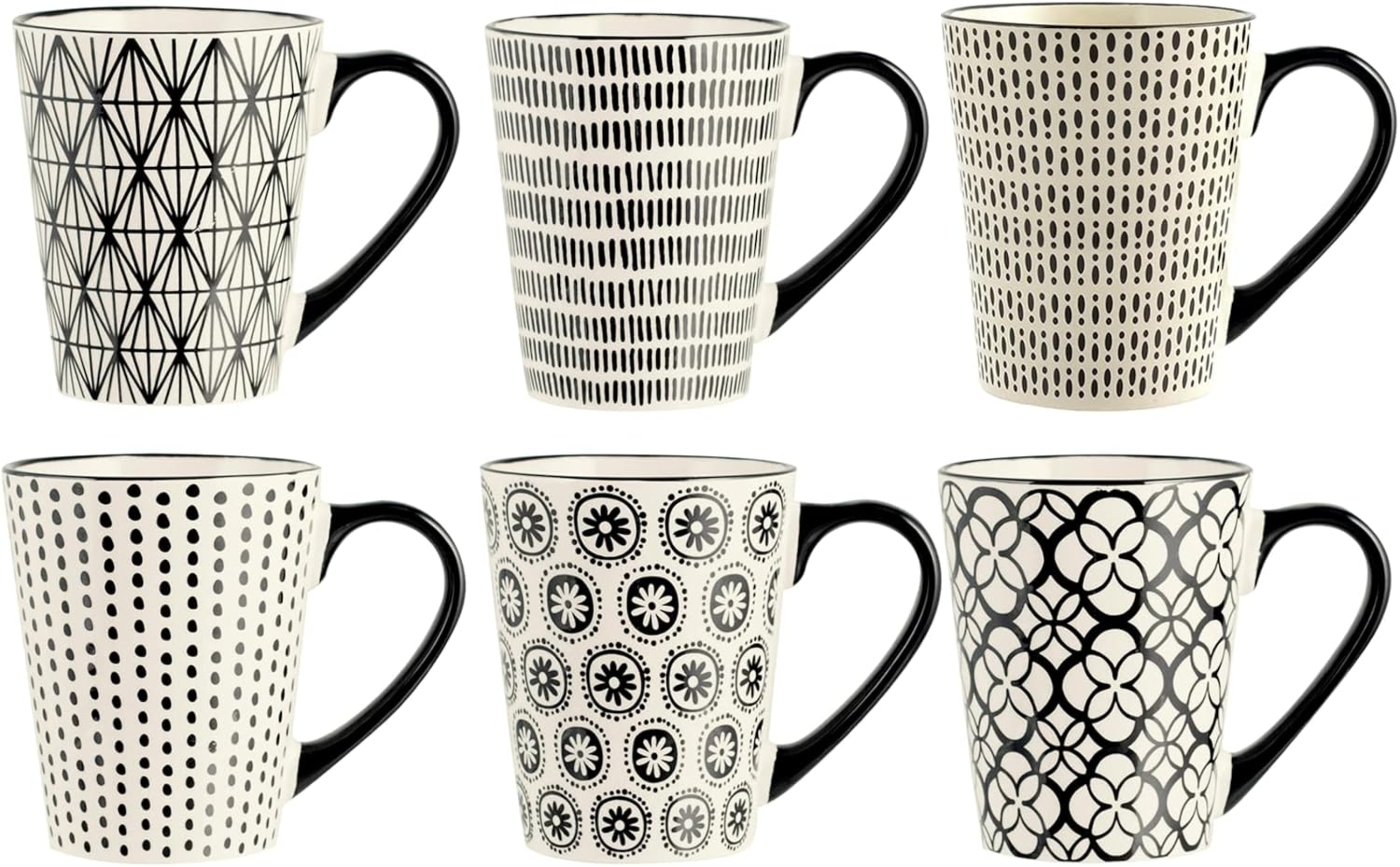 Set de 6 căni HH vhera, perfecte pentru degustarea de ceai, ceaiuri din plante, Cafelatte; colecția vhera este caracterizată de alb și negru, care sunt protagoniștii unor modele elegante și culori elegante care fac din produsul în sine un „stil atemporal”; prezența albului sau a negrului geometric neregulat sporește desenul de pe fund: jocuri, semne și flori care par asterischi, o amintire a tuturor acelor lucruri pe care le simțim atunci când ne luăm un moment de relaxare; completează-ți colecția; Disponibil Set Jumbo de 6 căni de cafea, 6 căni de ceai, 6 căni, 6 boluri multifuncționale; găsești și setul de 6 căni de cafea cu farfurie decorată și setul de ceai cu 4 căni de ceai cu farfurie decorată.