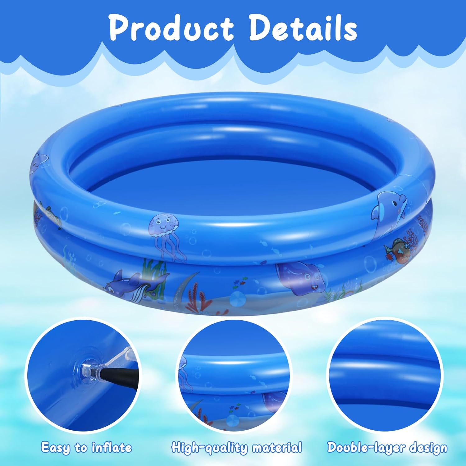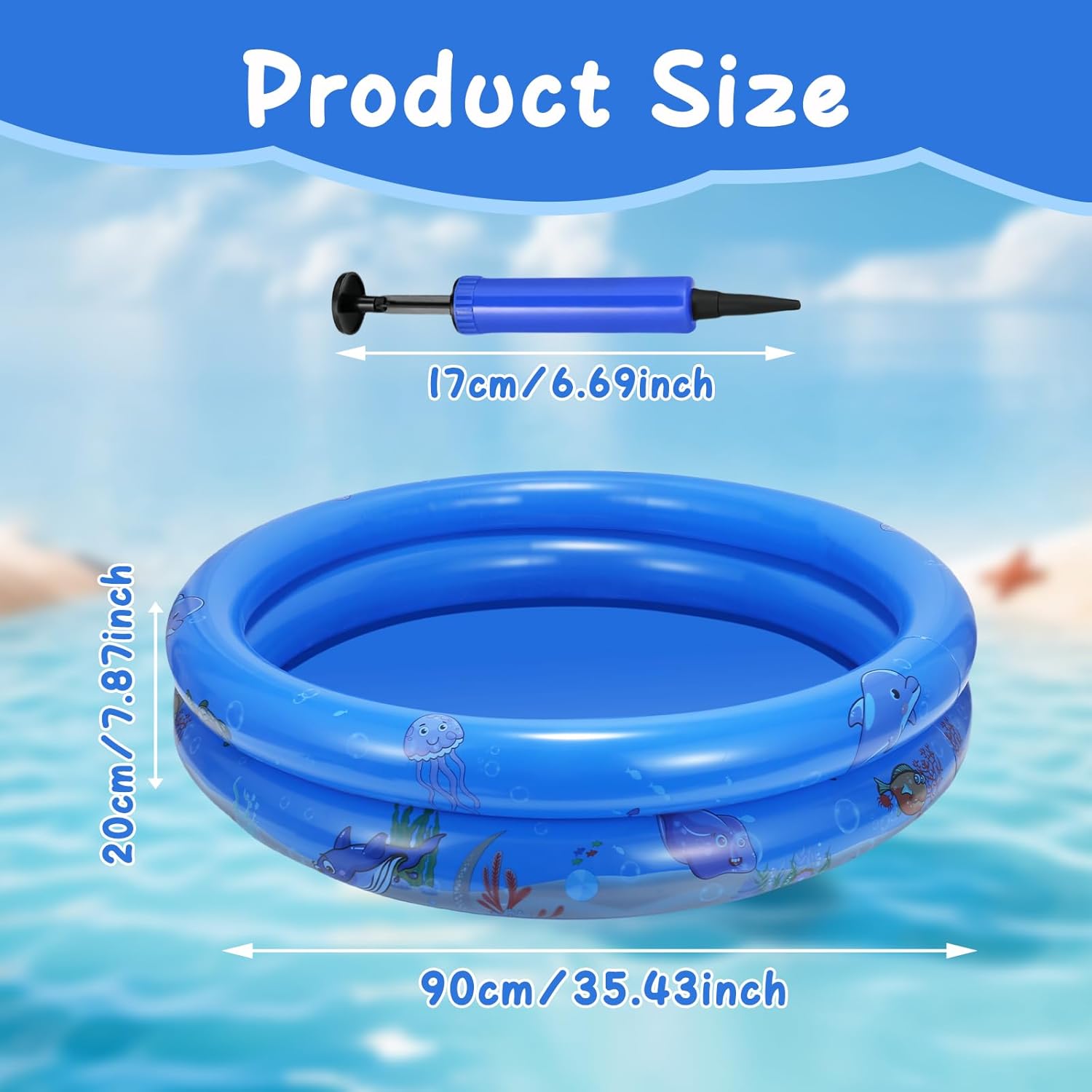 Informații despre acest articol Pachetul include: Veți primi 1 piscină gonflabilă pentru copii și 1 pompă, un cadou ideal de vară pentru copii, potrivită pentru zile de naștere, sărbători sau cadouri surpriză, pentru ca aceștia să se bucure de distracția de a se juca în apă în zilele fierbinți de vară. Material: Această piscină gonflabilă este fabricată din PVC sigur și durabil, astfel încât copiii să se poată juca în siguranță și să se bucure de răcoarea verii! Utilizare: Această piscină mică este excelentă pentru activitățile de joacă de vară. Poate fi folosită și ca piscină cu bile, piscină pentru pescuit, piscină de baie, nisipar, piscină de jucării etc. Este foarte potrivită pentru utilizare în grădină, pe balcon, în interior sau în exterior. Este o modalitate ideală de a vă răcori și de a vă distra în vara fierbinte. Ușor de utilizat: Această piscină gonflabilă se umflă rapid și se umple în câteva minute. Aceasta economisește timp. După utilizare, se golește ușor și se pliază pentru a economisi spațiu. Piscină gonflabilă pentru copii: Diametrul piscinei gonflabile pentru copii este de aproximativ 90 cm, înălțime: aproximativ 20 cm. Este ideală pentru ca copiii să se joace și aduce și mai multă distracție în timpul verii. Bucurați-vă de timpul verii cu familia și prietenii!