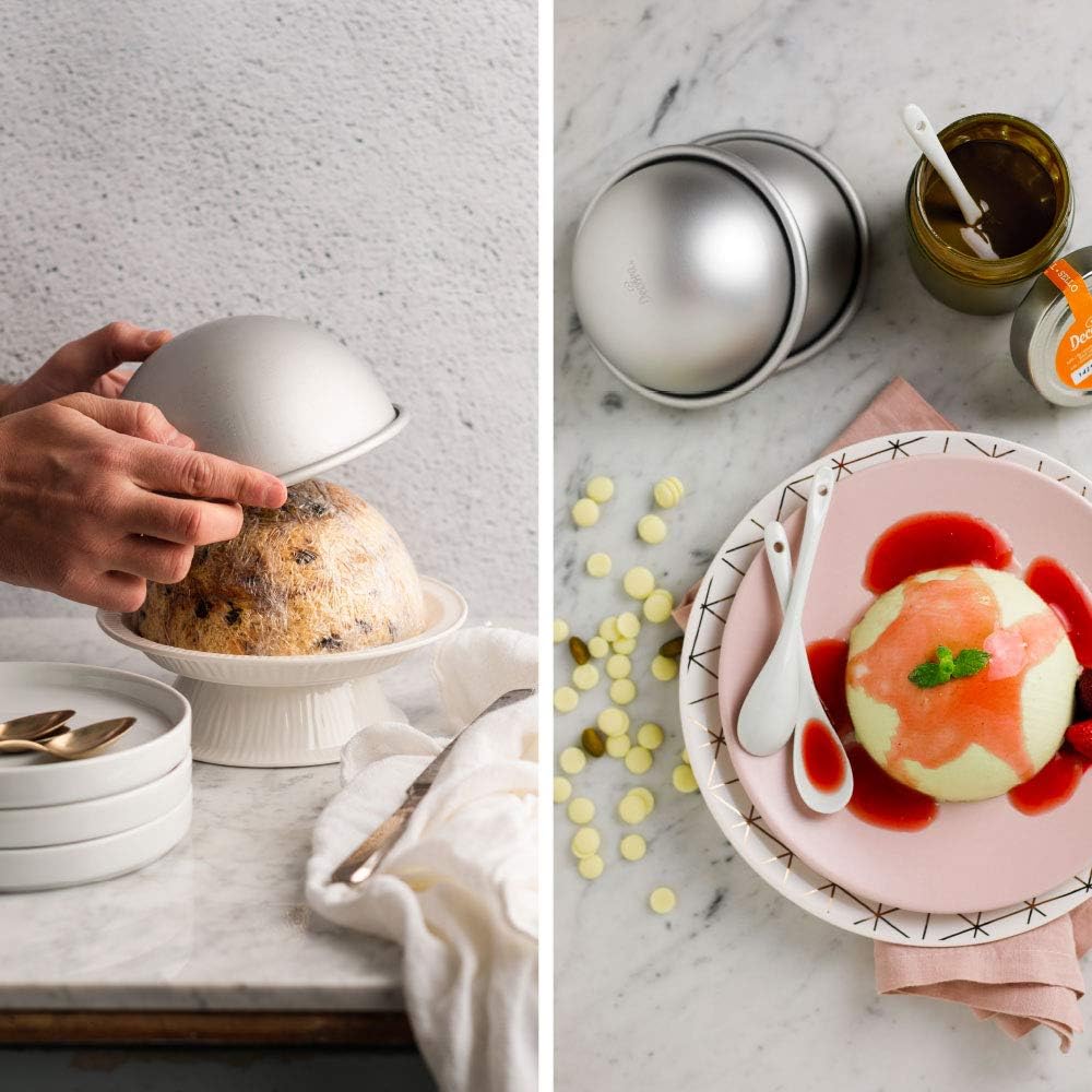 Backformen aus eloxiertem Aluminium, ideal für die Herstellung klassischer halbkugelförmiger Kuchen. Größe Ø 22 x H 11 CM. Geeignet für den Kontakt mit Lebensmitteln. Weitere Produktdetails.