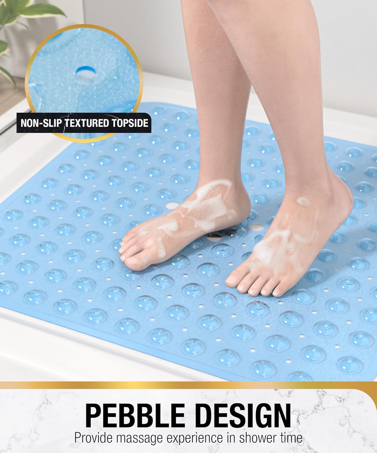Despre acest articol Covoraș anti-alunecare cu aderență extrem de puternică: Covorașul nostru de duș este echipat cu 152 de ventuze puternice și se prinde ferm de suprafețele netede și curate din cadă sau duș. Suprafața texturată crește frecțiunea și previne eficient alunecările sau căderile în timpul băii. Calitate premium pentru confort maxim: Covorașul nostru de duș este fabricat din material PVC moale și oferă o experiență delicată pentru pielea dumneavoastră. Designul cu pietricele adaugă o notă de rafinament, oferind în același timp o senzație relaxantă de masaj la duș. Perfect pentru utilizatorii de toate vârstele, inclusiv seniori, bebeluși și copii mici. Sute de orificii de drenaj eficiente: Covorașul nostru anti-alunecare pentru cadă are sute de orificii de drenaj, inclusiv 8 orificii mari în centru, care asigură o circulație eficientă a apei și a aerului. Această caracteristică inovatoare previne acumularea apei, permițând covorașului anti-alunecare pentru cadă să se usuce rapid și să rămână întotdeauna curat. Covoraș generos de 53 x 53 cm: Îmbunătățiți-vă experiența de baie cu covorașul nostru pătrat de duș cu dimensiunile de 53 x 53 cm. Această acoperire generoasă asigură o potrivire perfectă pentru majoritatea zonelor de duș, făcându-l alegerea ideală pentru utilizare acasă, la sală sau la spa. Alegeți dintre 8 culori elegante care completează perfect orice decor de baie. Ușor de curățat: Pur și simplu clătiți-l și agățați-l să se usuce într-un loc bine ventilat. Și acest covoraș anti-alunecare pentru baie este lavabil la mașină. Aruncați-l în mașină dacă este necesar, astfel încât să-și mențină aspectul proaspăt fără efort. Sfaturi calde: Covorașul poate fi aplicat numai pe suprafețe curate, netede, nu pe suprafețe texturate, placate cu gresie sau neuniforme. Fixați ventuzele înainte de fiecare utilizare, umeziți cada cu puțină apă înainte de a umple căptușeala căzii și apoi apăsați covorașul de baie cu mâinile pentru a fixa ferm ventuzele pe locurile netede. Nu folosiți ulei de baie dacă alunecați. Mai multe detalii despre produs