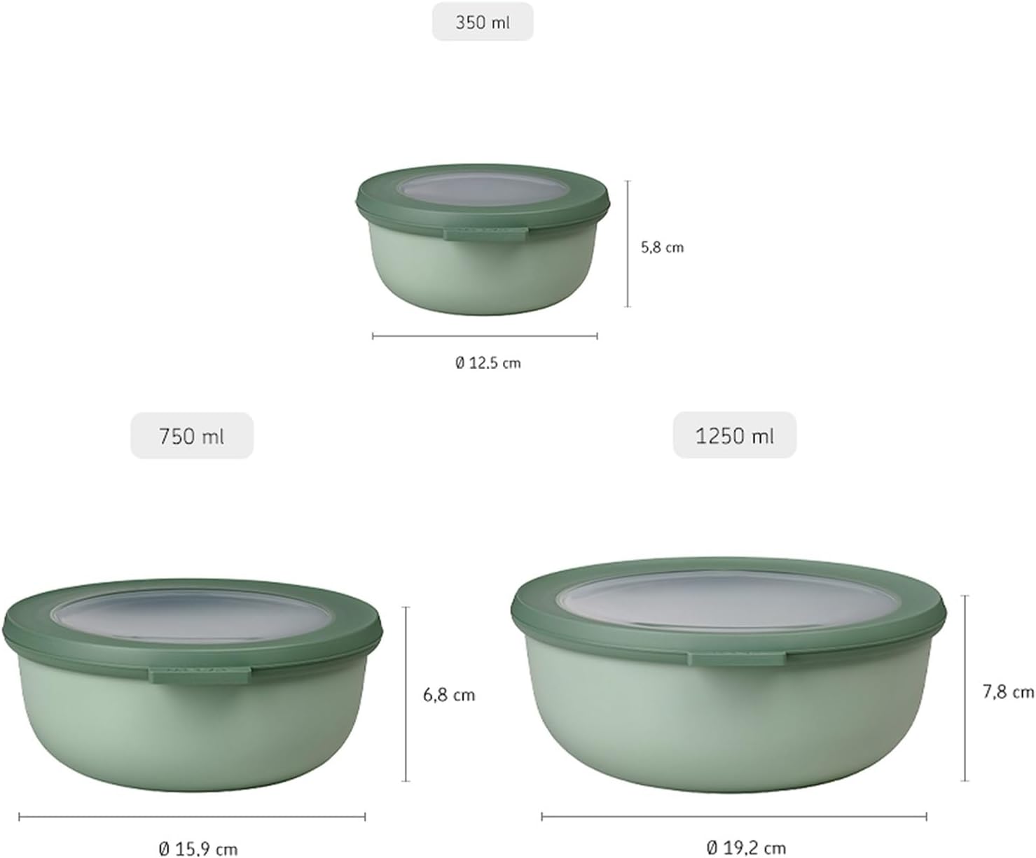• Set de 3 boluri cu capacități de 350 ml, 750 ml și 1250 ml