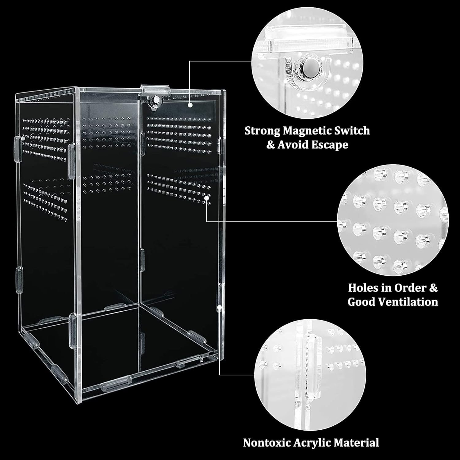 O alegere practică și sigură pentru reptilele sau insectele tale de companie, această cutie din acril transparent îți permite să le oferi un spațiu confortabil și bine ventilat, în timp ce tu le poți observa în cele mai mici detalii.