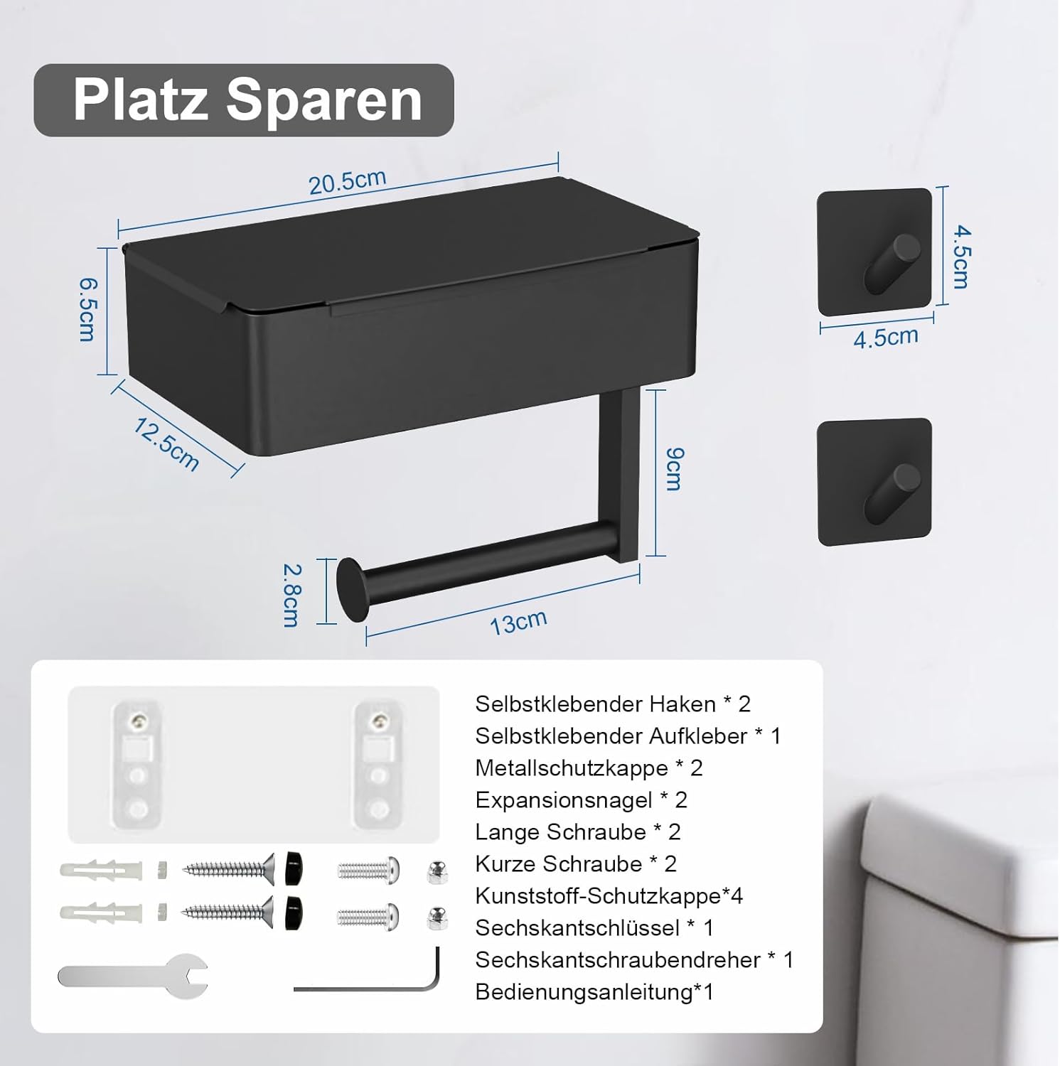 Transformă organizarea băii sau a oricărui spațiu cu suportul de hârtie igienică 3 în 1, multifunctional și fără forare. Pe lângă rolul său principal, suportul include un raft pentru depozitarea șervețelelor umede, tampoanelor sau altor obiecte mici și un spațiu superior ideal pentru telefon, flori sau accesorii decorative. Montajul este simplu, fără găurire, pe suprafețe netede, oferind soluția perfectă pentru un spațiu curat și elegant.