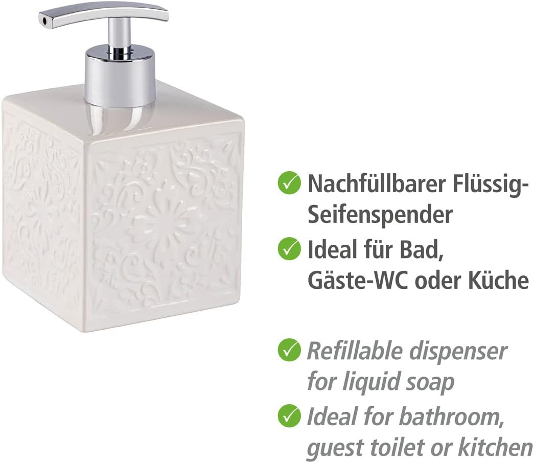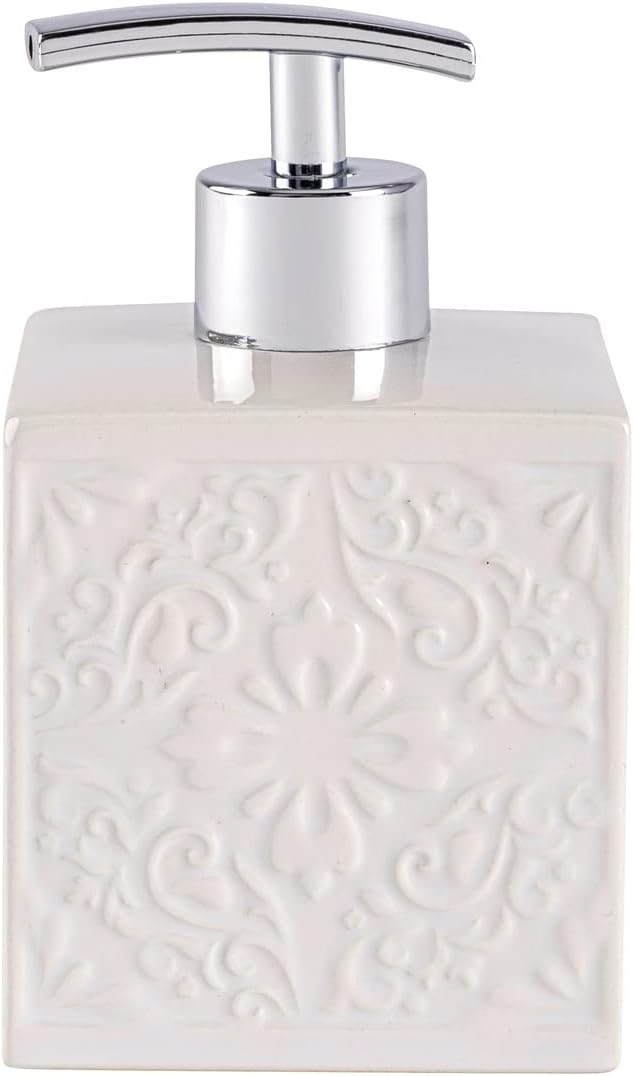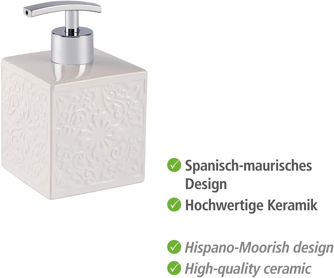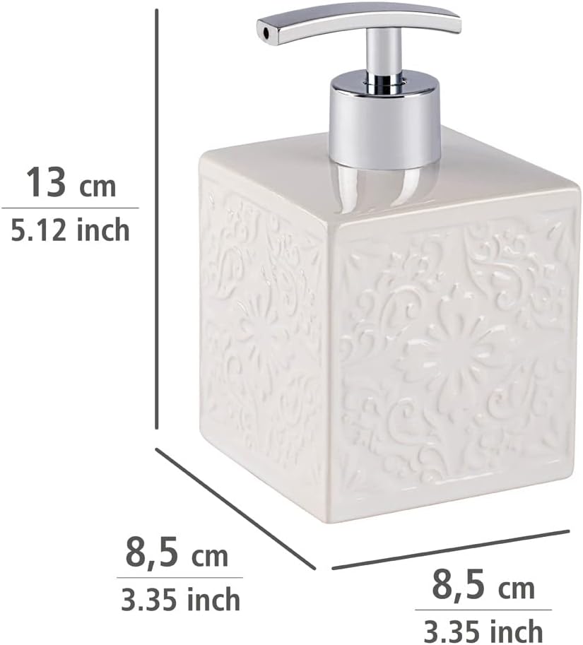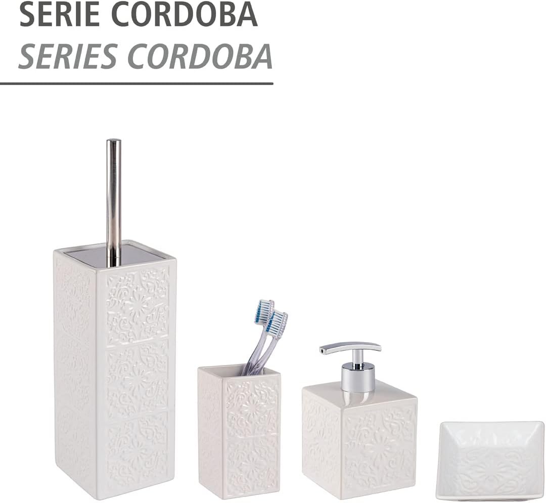 Informații despre acest articol Design exotic: Dozatorul de săpun Cordoba aduce o atmosferă de vacanță în baia și toaleta de oaspeți, cu forma sa simplă, minimalistă și ornamentele elegante hispano-maure. Funcție practică: Dozare perfectă cu dozatorul de săpun reîncărcabil cu pompă; prin apăsarea ușoară a butonului de dozare, cantitatea dorită de săpun, detergent de vase sau loțiune este eliberată. Calitate superioară: Pentru a vă bucura mult timp de acest accesoriu, dozatorul de săpun lichid este fabricat din ceramică fină, care este durabilă și robustă. Combinabil inteligent: Completați-vă amenajarea băii cu accesoriile de baie asortate din seria Cordoba, cum ar fi paharul pentru periuțe de dinți, savoniera sau setul de toaletă. Seria este disponibilă în albastru și alb. Conținutul livrării: Dozator de săpun Cordoba alb de la WENKO, dozator de săpun lichid din ceramică, dimensiuni (Î x L x A) 13 x 8,5 x 8,5 cm, capacitate 500 ml. Mai multe detalii despre produs