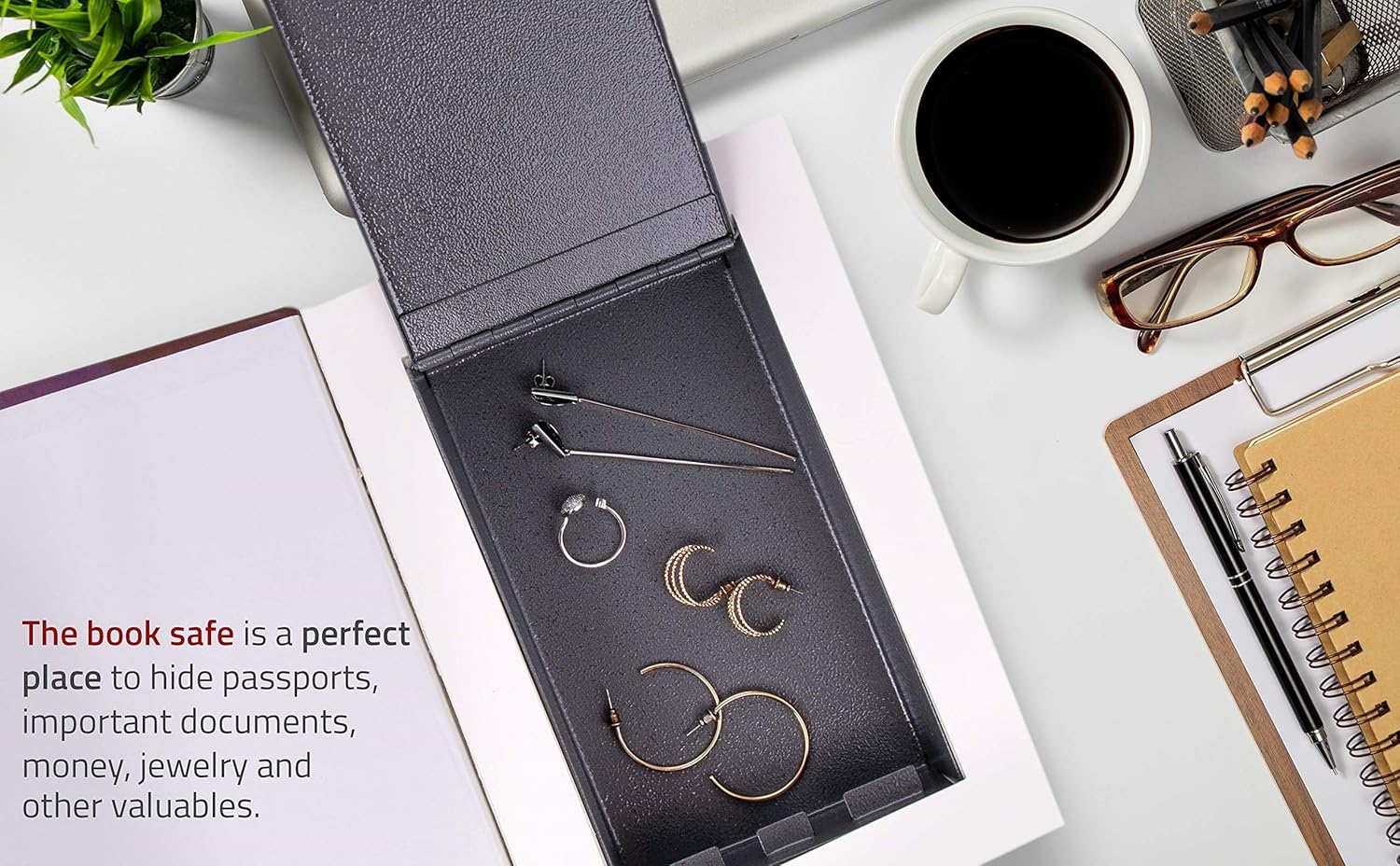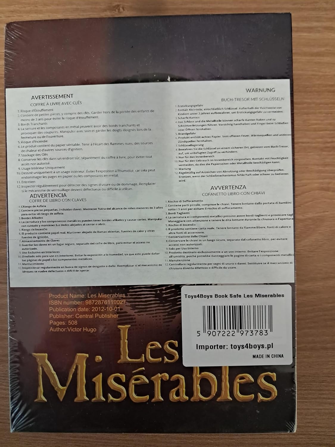 • SEIF PORTABIL Arată ca o carte, excelent pentru ascunderea obiectelor mici de valoare pe un raft de cărți • PAGINI REALE DE HÂRTIE În acest model de seif, cărțile pot fi întoarse. • IDEAL PENTRU CĂLĂTORII SAU ACASĂ „Les Misérables” este un titlu care va face o impresie bună atât asupra celorlalți pasageri, cât și pe raftul din casă • Dacă, din orice motiv, nu sunteți mulțumit de achiziție, vă vom rambursa banii - fără întrebări • Seif secret cu cărți și spațiu de depozitare a cheilor