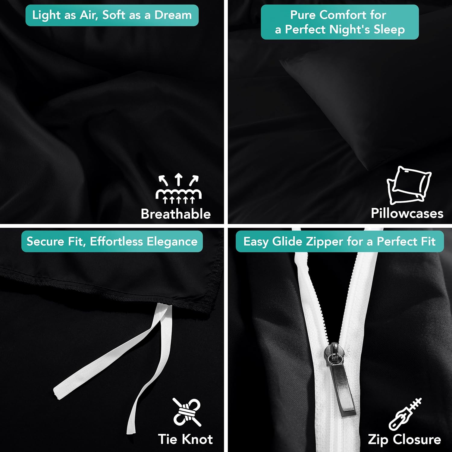 [RESIGILAT] Utopia Bedding Set Husa Pilota, 2 Piese, Negru
