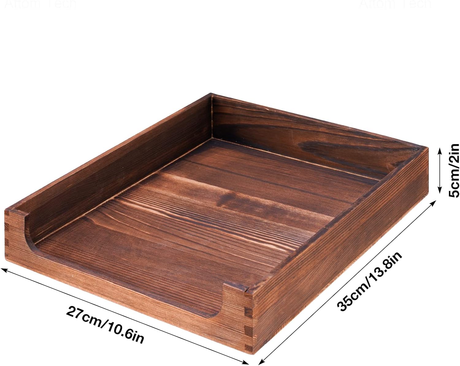 Tavă de scrisori din lemn de pin natural NiOffice, organizator de birou multifuncțional pentru birou, bucătărie - perfectă pentru dosare, rechizite și accesorii mici, stivuibilă, economisește spațiu (ars rustic)