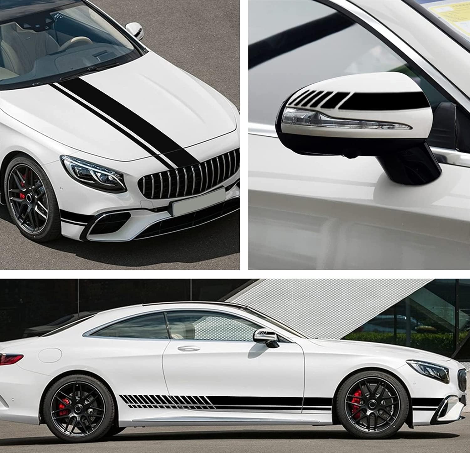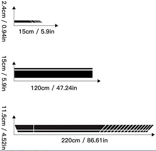 5. 【Dimensiune】 15 \* 2,4 cm (2 bucăți) + 120 \* 15 cm (1 bucată) + 220 \* 11,5 cm (2 bucăți). Autocolantul este potrivit pentru orice mașină, jeep, camion, camion, SUV, etc.
