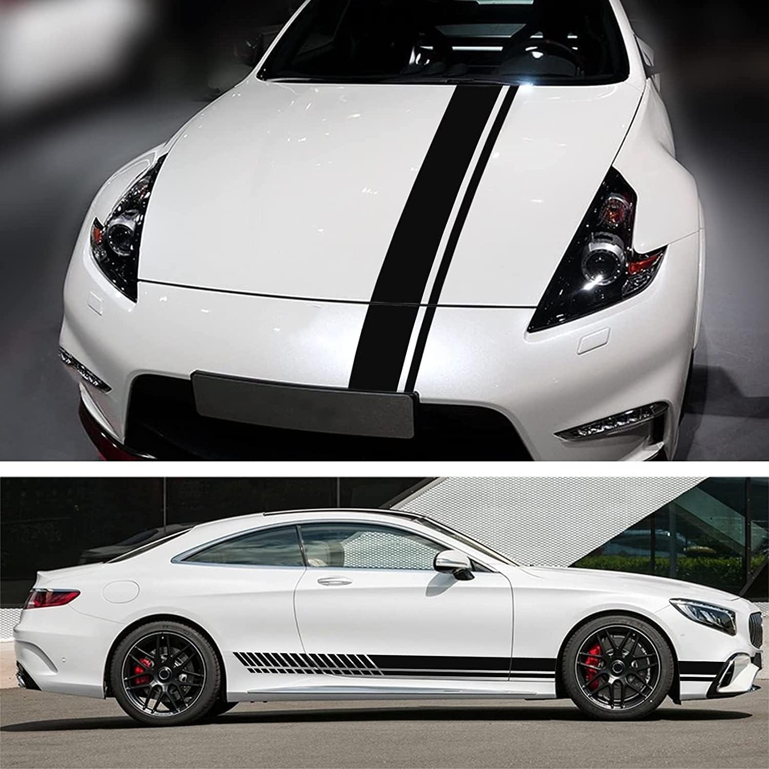 3. 【Decorație DIY】 Puteți să le aplicați în orice poziție pe caroserie, de exemplu, fuste laterale, geamuri din spate etc. Autocolantele pentru praguri laterale și kiturile de dungi de curse pot fi aplicate pe orice tip de mașină cu decorațiuni mici.