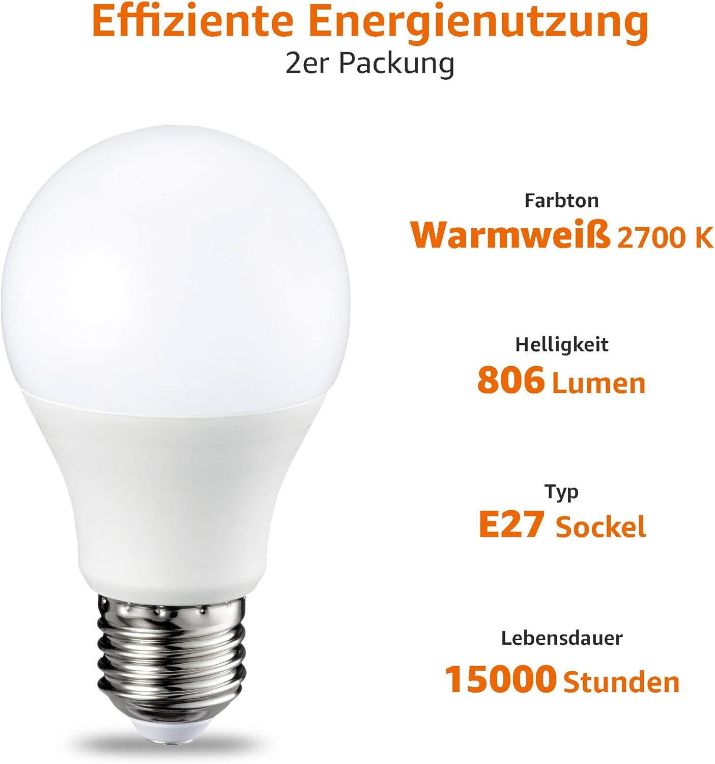 [RESIGILAT] Bec LED E27 Amazon Basics, 9W, Alb Cald, Set 2 bucati