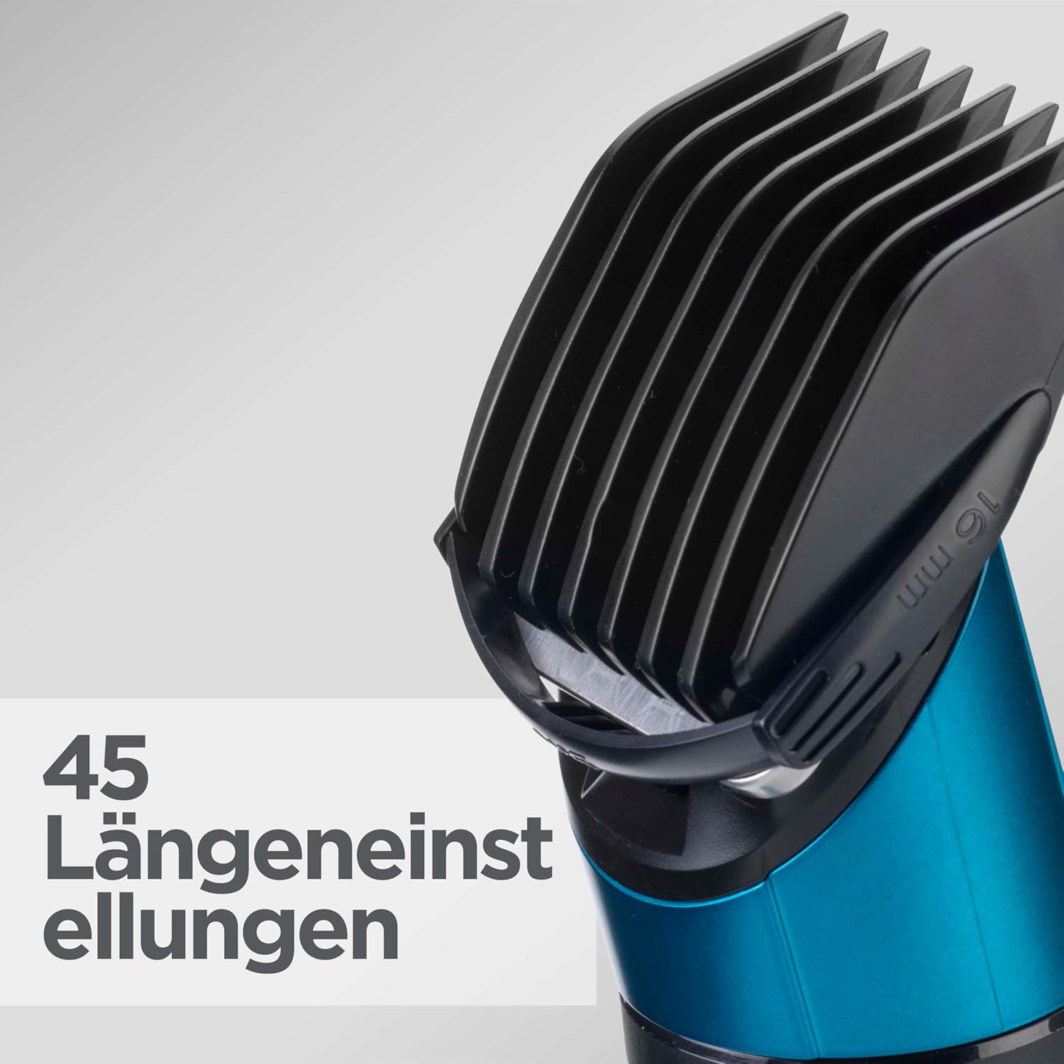 Descriere produs: MAȘINĂ DE TUNS FĂRĂ FIR PUTERNICĂ - Lamele japoneze din oțel asigură tăieri precise și un rezultat profesional de tundere - atât pe baterii, cât și conectate la rețea. DURATĂ LUNGĂ DE VIAȚĂ A BATERIEI - Bateria litiu-ion oferă până la 160 de minute de utilizare continuă cu performanțe constante, chiar și la un nivel scăzut de încărcare. LUNGIMI DE TĂIERE PRECISE - 45 de lungimi de tăiere și 8 piepteni permit tunsori personalizabile și control total asupra stilului dorit. OPȚIUNI VERSATILE DE STILIZARE - 5 niveluri ajustabile pentru diferite lungimi de păr, ideale pentru diferite stiluri - de la estompări la contururi precise. ROBUST & PRACTIC - Vine cu o carcasă rigidă care asigură o depozitare sigură. Conceput pentru utilizare pe termen lung cu performanțe constant ridicate. INSTRUCȚIUNI DE ÎNTREȚINERE - Încărcați complet timp de 3 ore înainte de prima utilizare. Bateria atinge capacitatea maximă după 3 cicluri. Pentru a obține cele mai bune performanțe, curățați și ungeți lamele după fiecare utilizare.