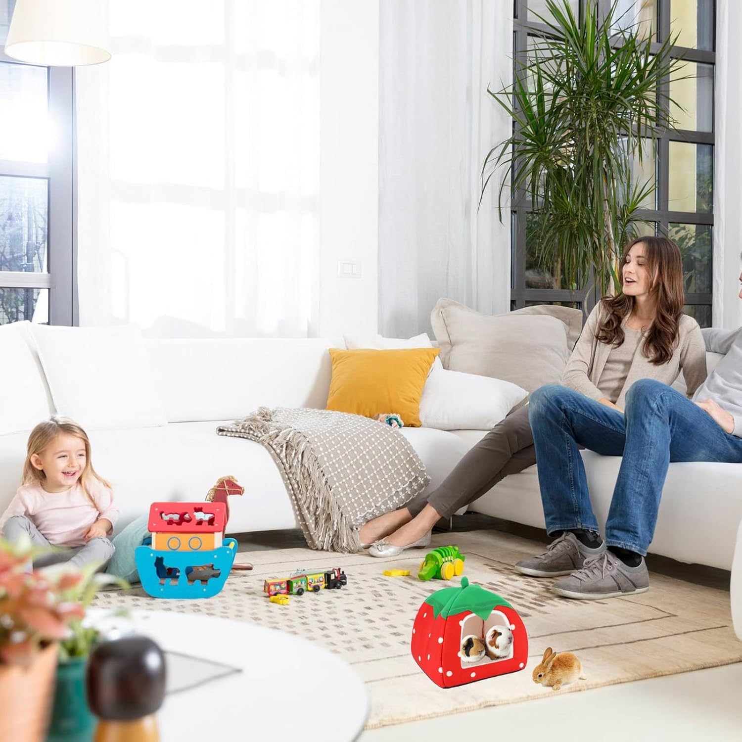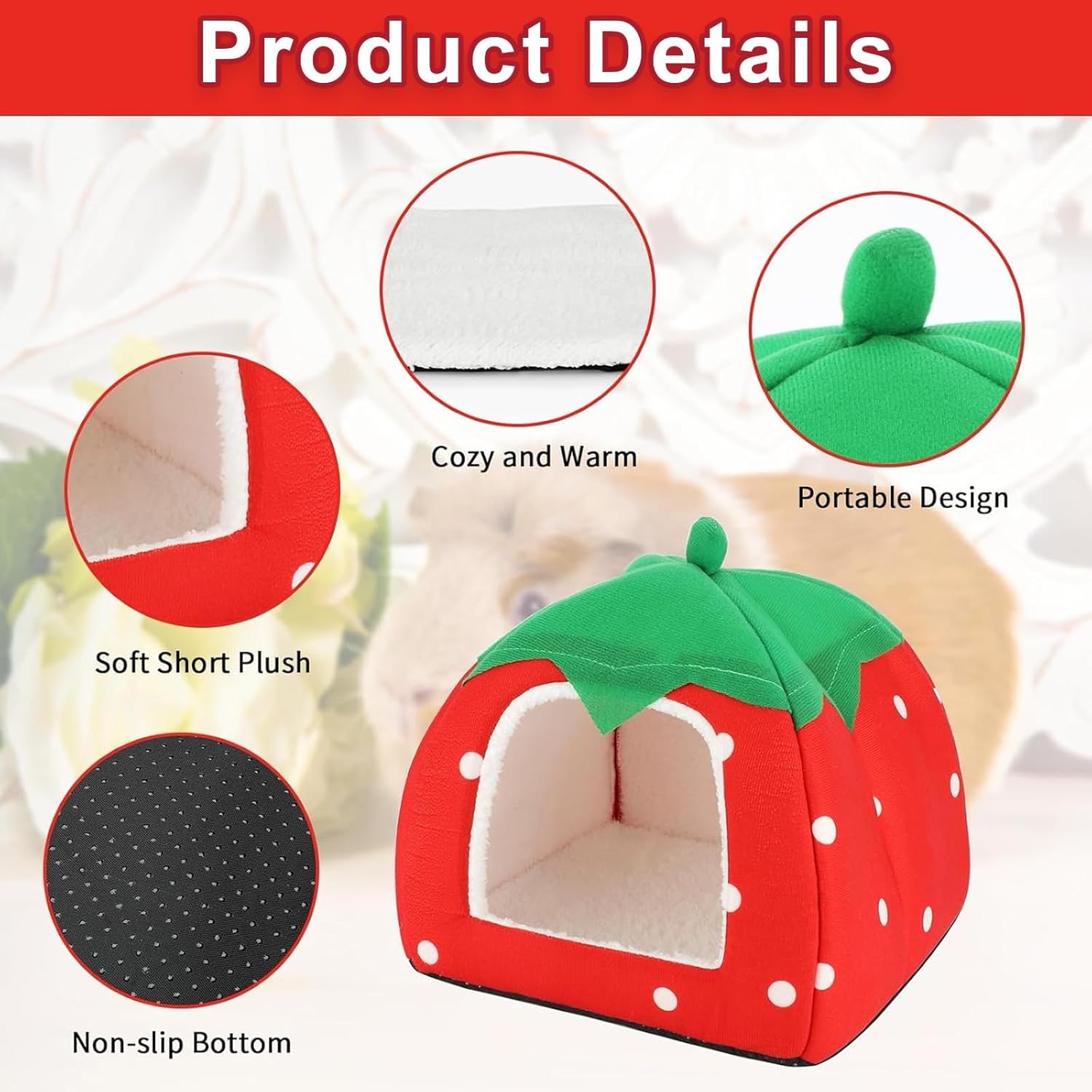 Descrierea produsului: Porcușorii de Guineea sunt blânzi și timizi, iar un ascunzător întunecat le poate oferi un sentiment de siguranță. Chiar și iarna rece, un cuib cald pentru porcușori de Guineea poate oferi animalelor mici o relaxare confortabilă. Lavabil: Chiar dacă animalele mici își fac nevoile în interior, nu trebuie să vă faceți griji. Cuibul pentru porcușori de Guineea este ușor de curățat. Culoarea nu se va estompa după spălare. Pentru a prelungi durata de viață a paturilor pentru porcușori de Guineea cu căpșuni, cel mai bine este să le spălați manual. Trei moduri: Există trei moduri de utilizare a acestui pat pentru porcușori de Guineea: Dacă animalul dvs. de companie nu numai că se odihnește în cuib, dar îi place și să doarmă pe sul, puteți scoate o pernă și o puteți așeza deasupra. Pe vreme mai caldă, covorașul poate fi scos și folosit separat. Căldură: Cuibul pentru porcușori de Guineea este fabricat din pluș scurt și lână, perna este umplută cu spumă de înaltă densitate, iar partea de jos are particule antiderapante. Un cuib de porcușori de Guineea sigur, confortabil și moale poate ține animalele mici de companie de cald toată iarna. Dimensiune: Căsuța pentru hamsteri măsoară 26 x 26 x 24 cm. Este potrivit pentru cobai, iepuri pitici, chinchilla, dihori, dragoni bărboși și hamsteri similari hamsterilor sirieni. Vă rugăm să verificați dimensiunea înainte de cumpărare. Instrucțiuni de utilizare 1