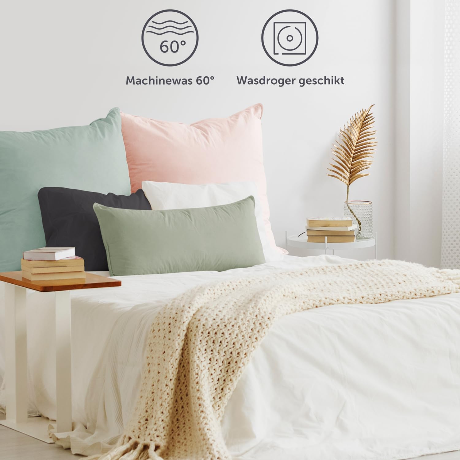 Cele mai înalte standarde de calitate: indiferent dacă alegeți o față de pernă de 40 x 40 cm sau una dintre celelalte dimensiuni ale noastre, toate fețele noastre de pernă din jersey premium Blumtal sunt fabricate din bumbac 100% pieptănat de înaltă calitate. Pentru a nu vă face griji cu privire la calitatea noilor dumneavoastră fețe de pernă, acestea au fost testate pentru substanțe nocive conform Standardului 100 de la Oeko-Tex (număr certificat: 20.0.23116). Fără scame, cu culoare de lungă durată. Fețele de pernă Blumtal au fost fabricate folosind cele mai bune procese pentru a vă oferi bucurie cât mai mult timp posibil. Finisajul suprafeței asigură că suprafața sa netedă nu se scadă și arată deosebit de elegant. Datorită procesului de vopsire reactivă, în care se stabilește o legătură deosebit de fermă între fibră și culoare, fața de pernă din jersey își poate păstra culoarea și pentru o lungă perioadă de timp.