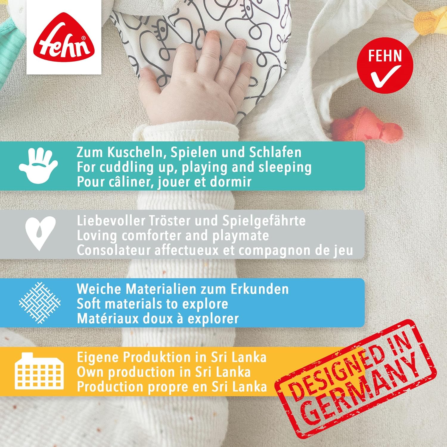 Informatii despre acest produs: Aceasta paturica draguta cu cap de vidra aduce zambete pe chipurile bebelusilor: ofera confort, caldura, siguranta si devine rapid cel mai bun prieten. Paturica dragalasa este un adevarat ajutor la adormire - se cuibareste usor in inima micilor aventurieri obositi si devine un companion fidel, fie acasa, fie in calatorii. Materialele moi, amestecul de materiale si capetele innodate invita la apucare, simtire si imbratisare, astfel incat vidra Theo nu va mai fi lasata din mana curand. In momentele linistite, paturica este un ajutor la adormire, iar in timpul zilei, aspectul vesel al vidrei asigura distractie - un cadou dragut pentru bebelusi inca de la nastere. Continutul pachetului: 1x paturica vidra / Dimensiune 36 cm / Material exterior: plus, tricot, muselina / Umplutura: poliester lavabil la 30°C / Art.Nr. 047035.