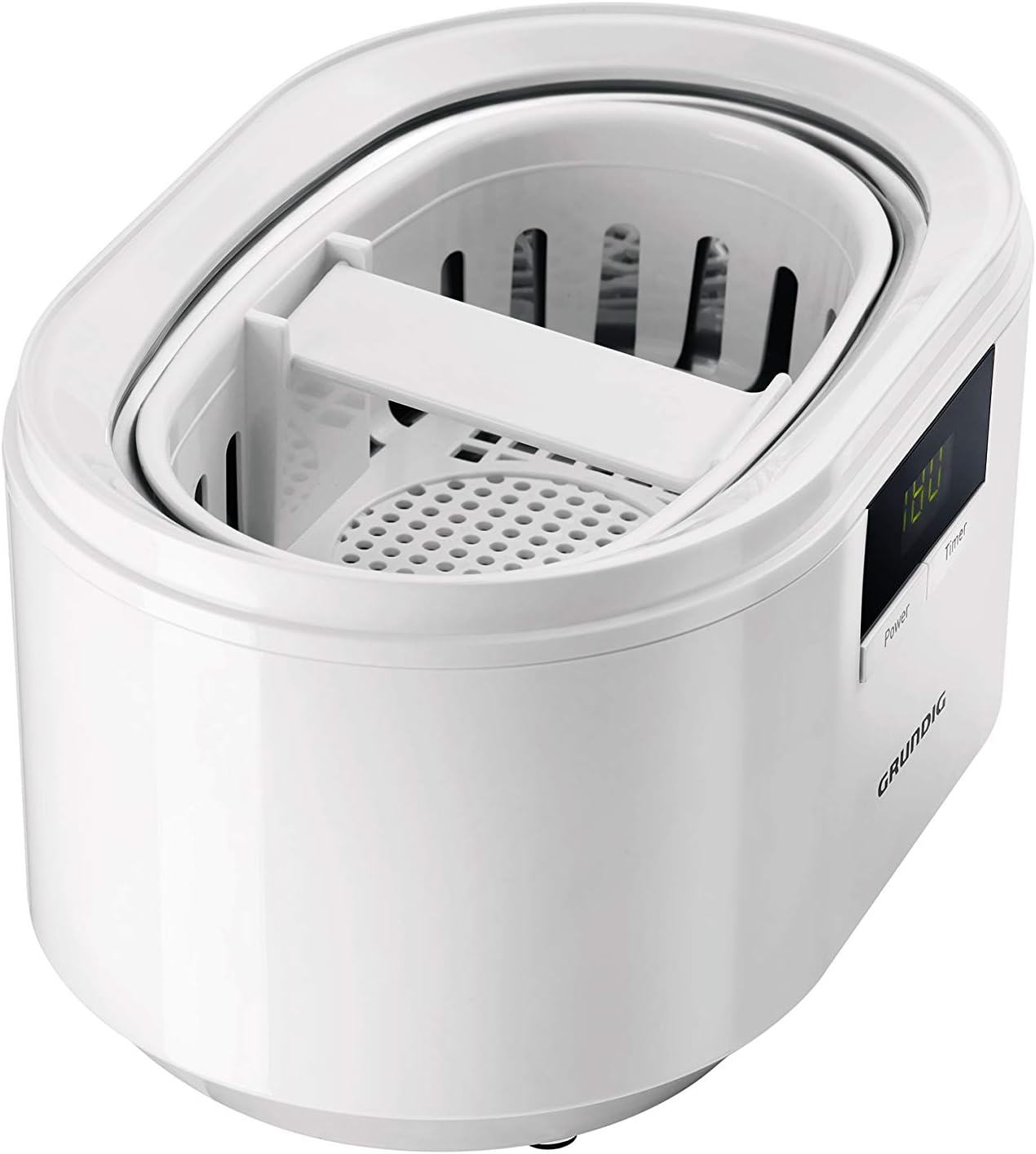 Grundig UC 6620 Aparat de curățat cu ultrasunete, cu funcție temporizator, curățare eficientă, principiu undă dublă, rezervor apă 500 ml, putere 50W, suport ceas integrat, alb.