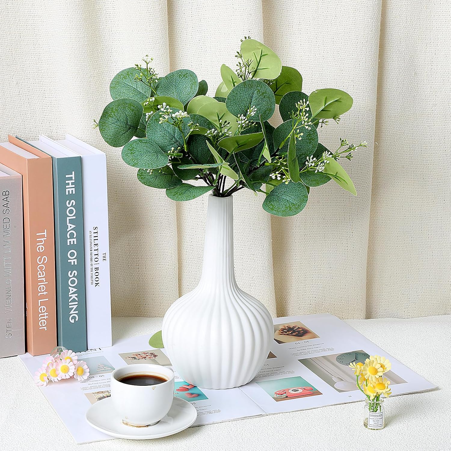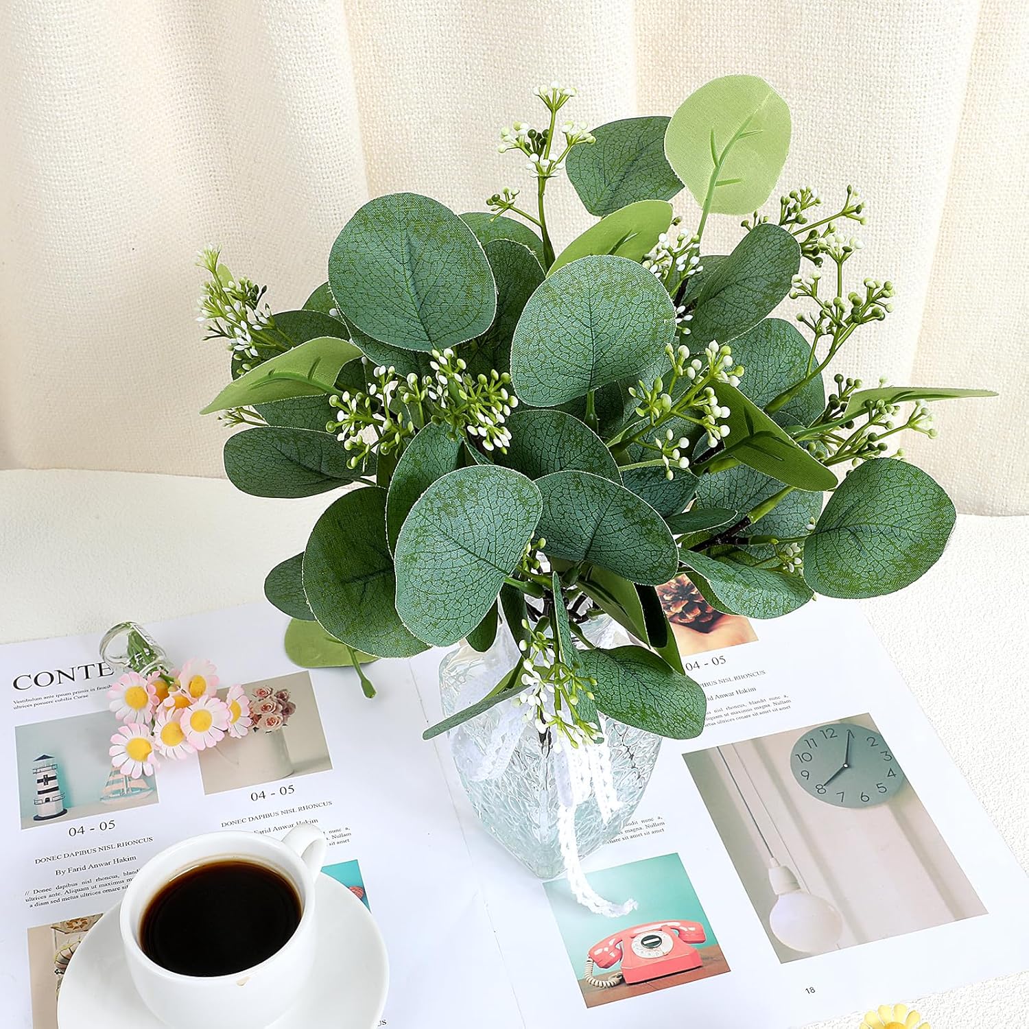 Acest set de frunze artificiale de eucalipt oferă o soluție simplă și elegantă pentru a adăuga verdeață și un aer natural în orice spațiu.