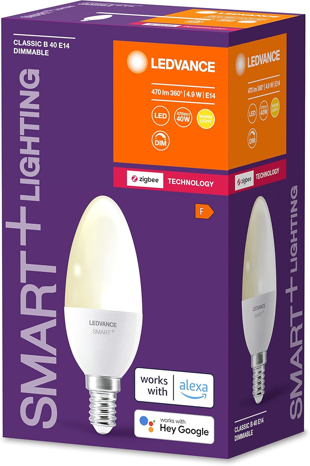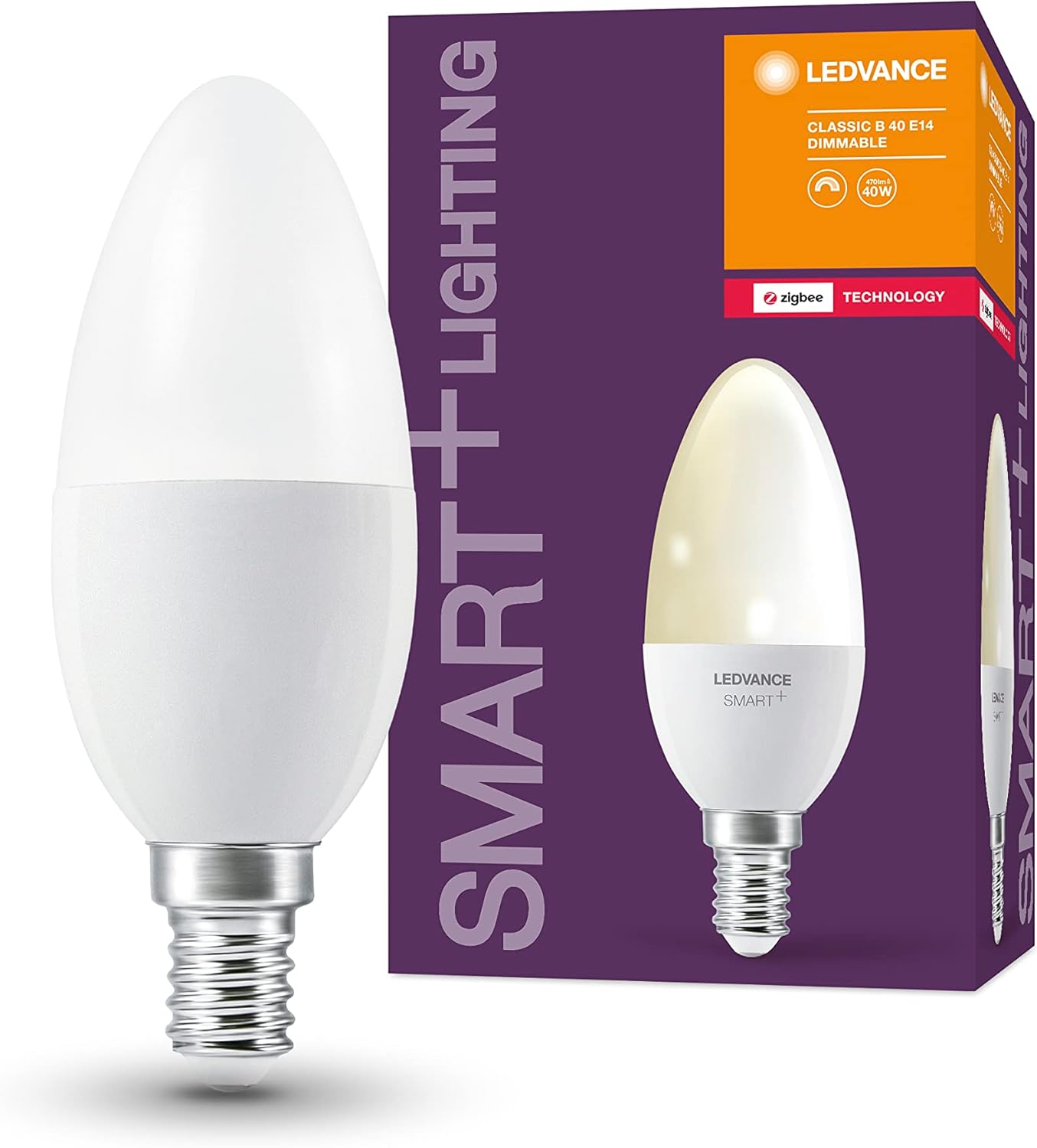 Becul inteligent LEDVANCE Smart+ cu soclu E14 și tehnologie ZigBee oferă control complet asupra iluminatului din locuință. Cu lumină alb cald de 2700K și funcție de reglare a intensității, acest bec tip lumânare este ideal pentru crearea unei atmosfere confortabile. Poate fi controlat prin aplicație, scenarii personalizate sau asistenți vocali precum Google Assistant și Amazon Alexa (necesită hub compatibil).